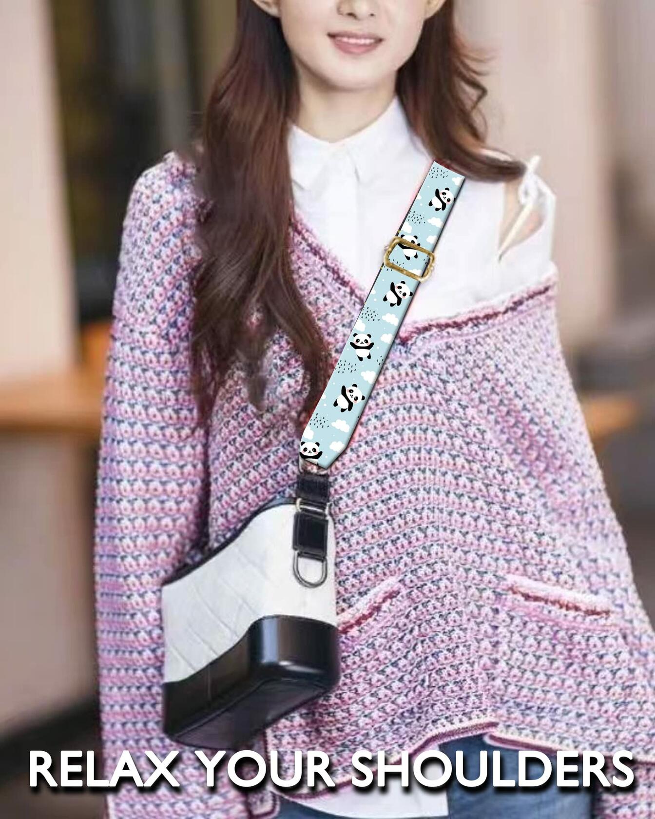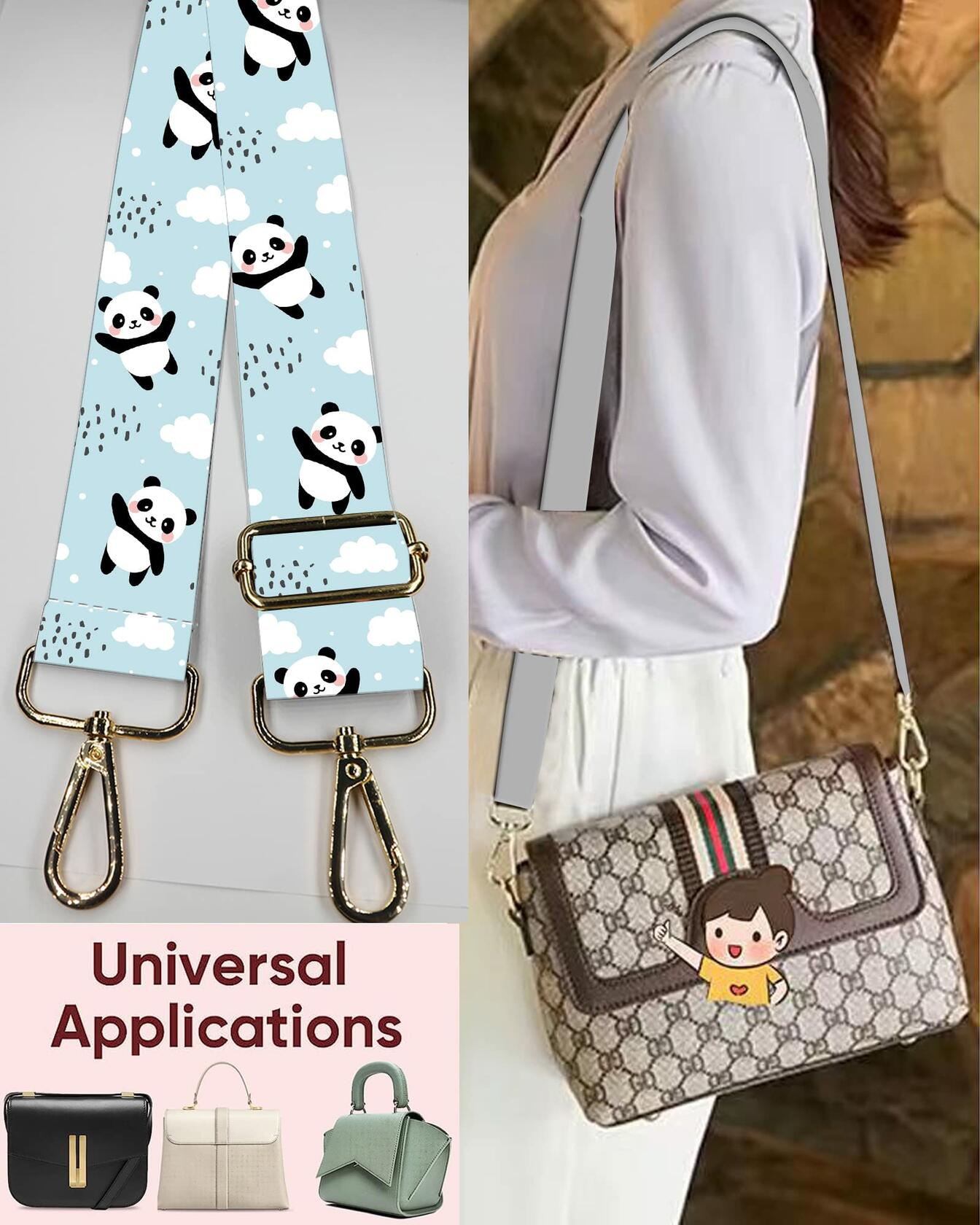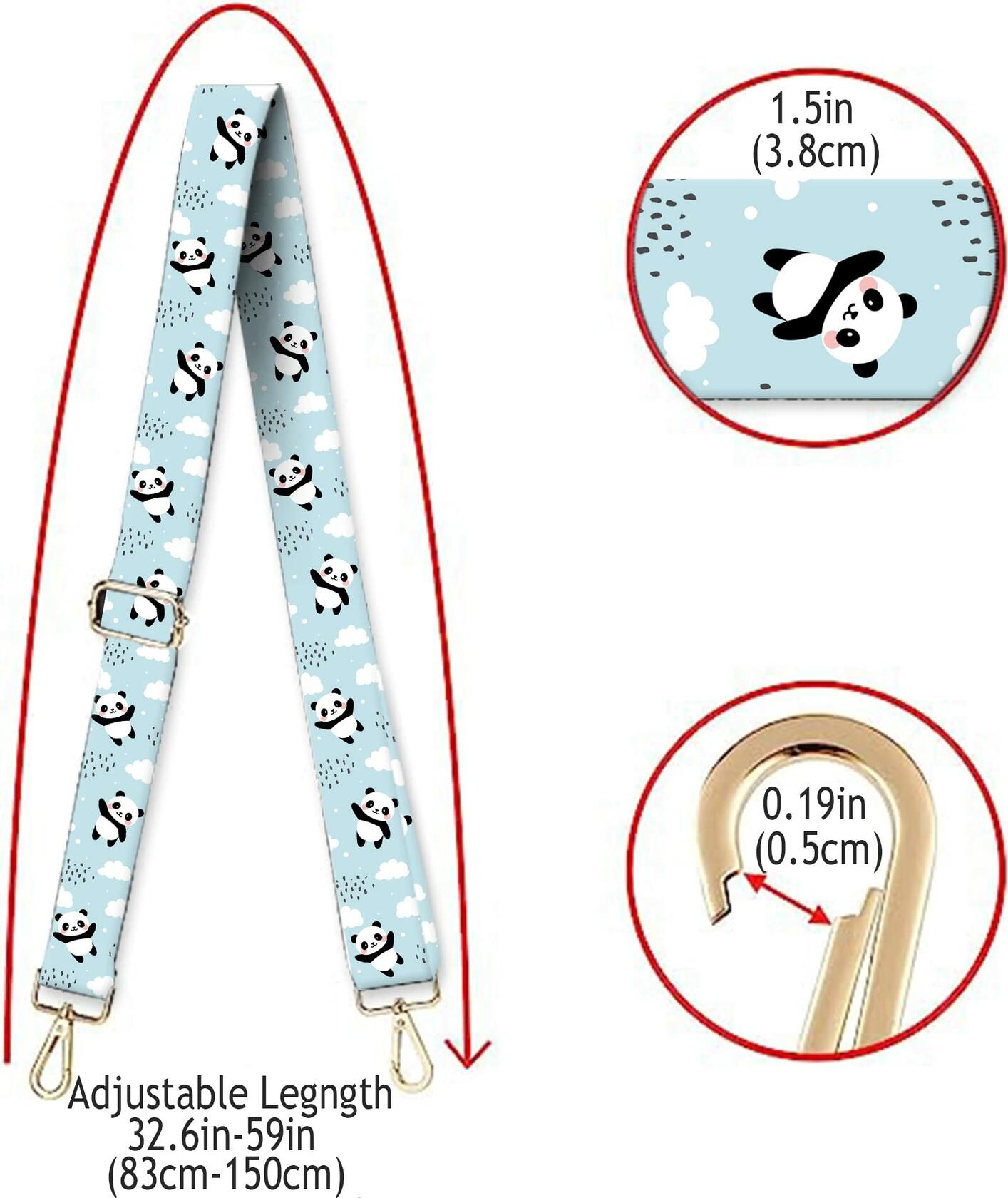 DANHRO Wide Adjustable Purse Crossbody Shoulder Strap Blue Pandas Rainbow Size L