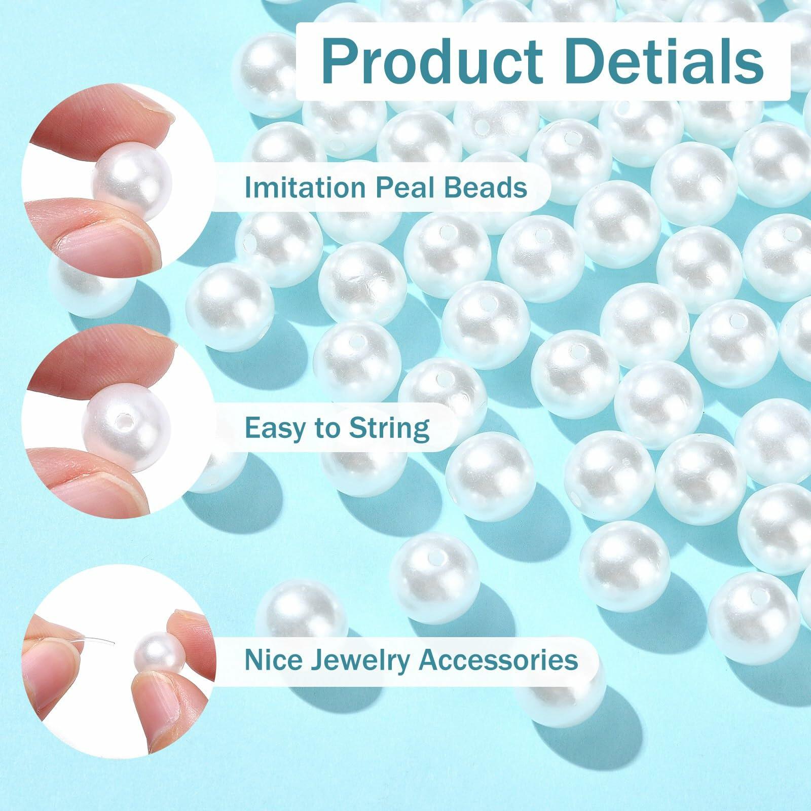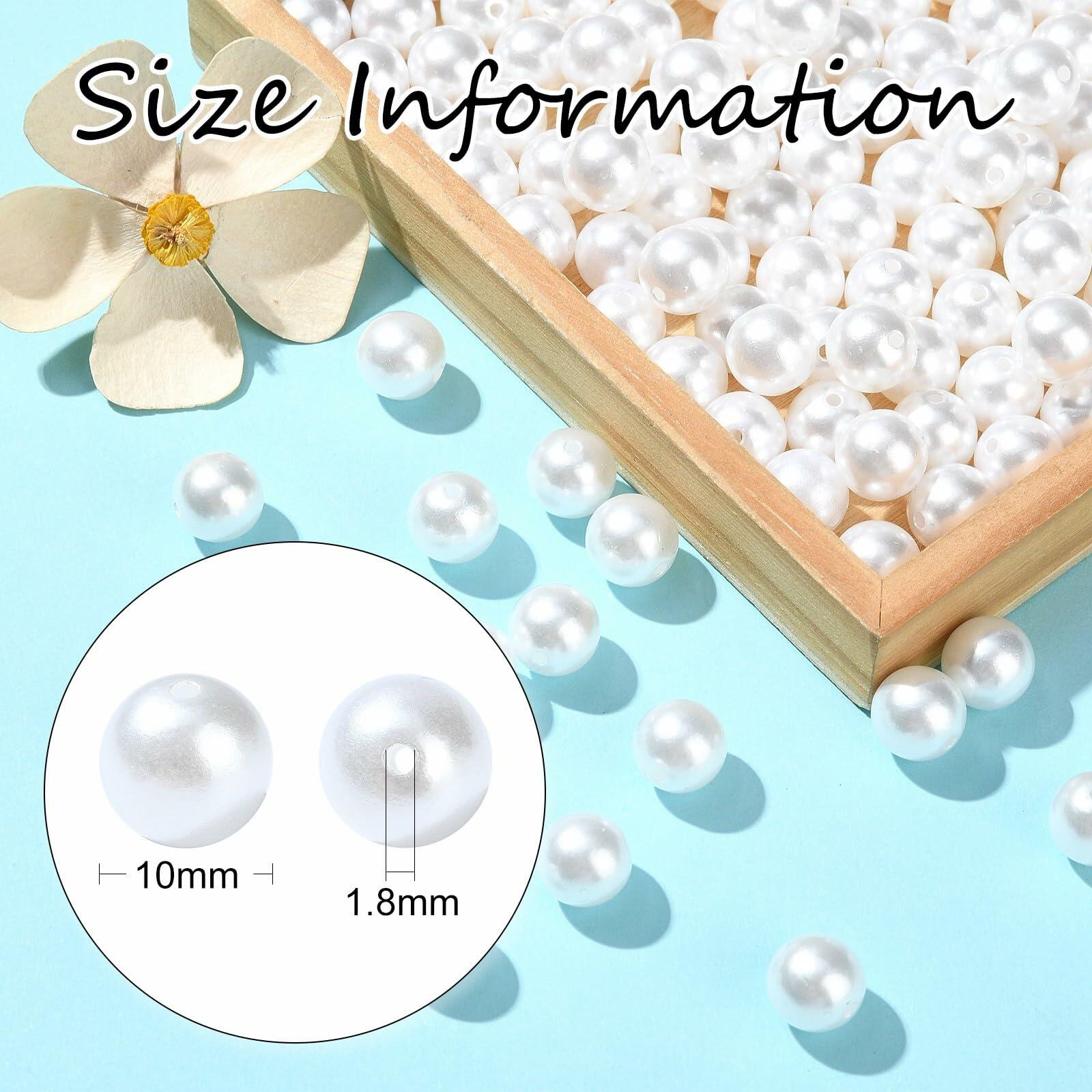 đ«ăSizeăAbout 10mm in diameter, Hole: 1.8mm.đ«ăQuantityăApproximate 1000 pieces imitation acrylic pearl beads, enough to meet your various needs of DIY jewelry creations.đ«ăNice MaterialăThe white round beads are made of acrylic, with smooth surface and nice appearance, good for long time use.đ«ăExcellent GiftsăThese acrylic loose beads can be perfectly matched with different beads to create charming jewelry accessories. Also they are also excellent gifts for people who love handmade jewelry.đ«ăWide ApplicationsăThe 10mm plastic pearl beads are ideal for jewelry making, bracelets, necklaces, vase filler, candle base filler, hair accessories, and more craft projects.