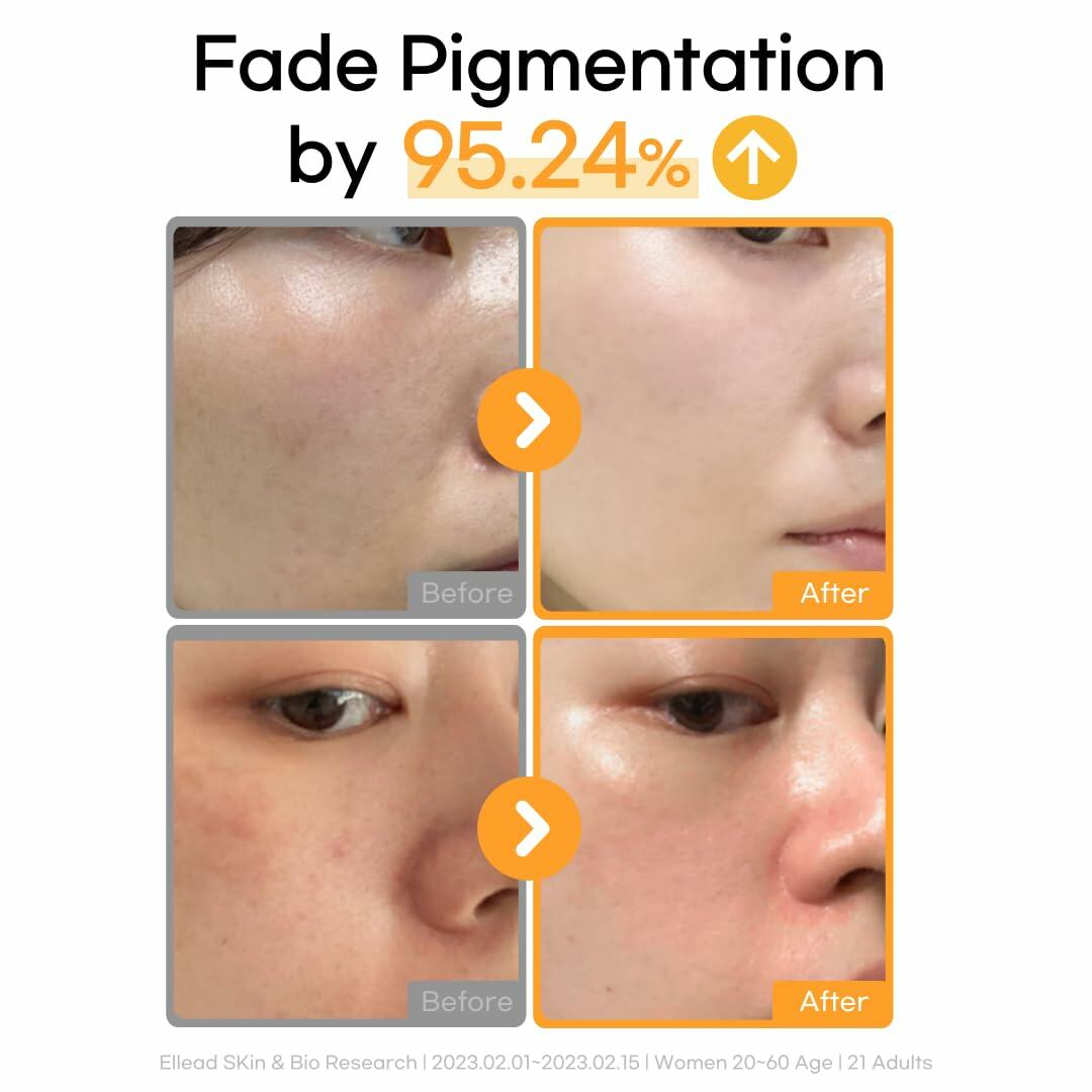 - [GLOWING SKIN RADIANCE]-Features 23% pure Vitamin C (Ascorbic Acid) to effectively fade dark spots the skin tone up, powerhouse what gives your skin a mega boost. This serum helps with the natural production of vitamin C and leaves your skin glowing!