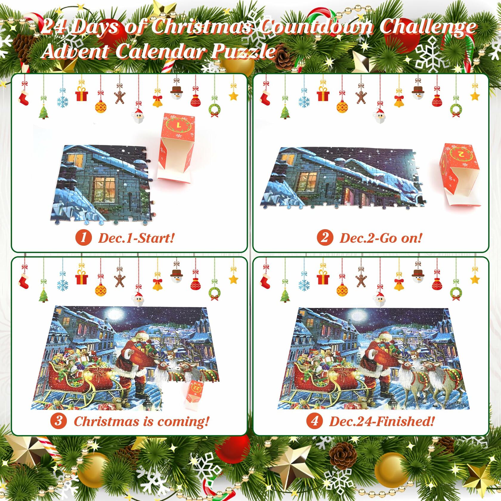 - Premium Quality Material and Meticulously Made: Our puzzle advent calendar are made of cardboard, not easy to bend, not easy to break, no sharp corners. High-definition printing, colors last forever. Each puzzle piece is precision machined to make each piece fit perfectly