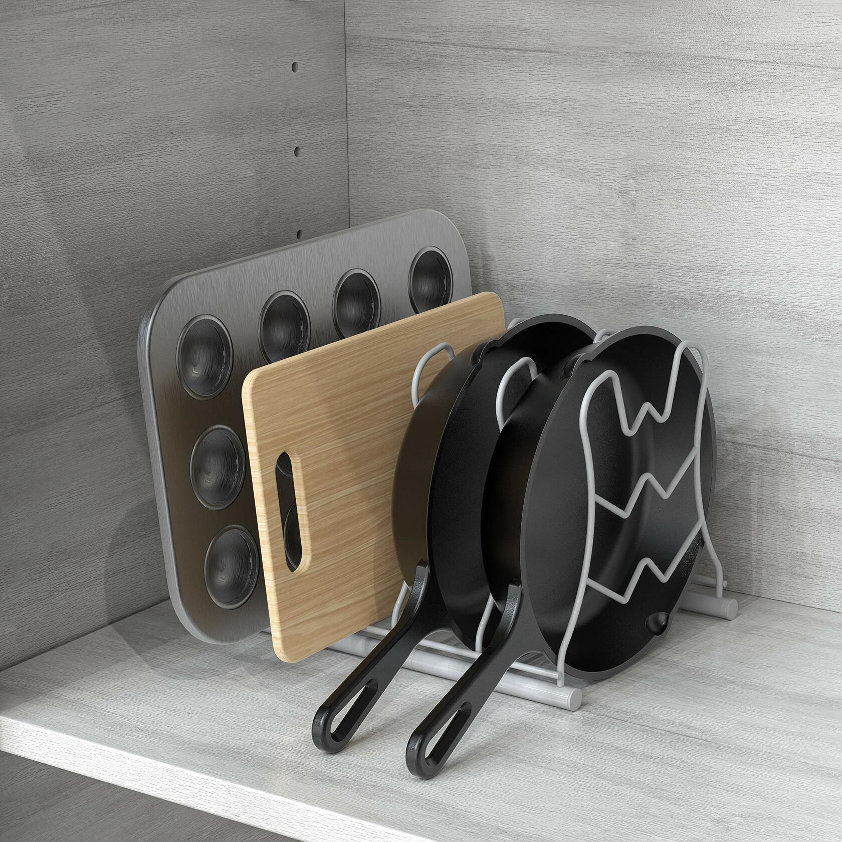 Deco Brothers Pan Organizer Rack for Kitchen Cabinet and Counter White