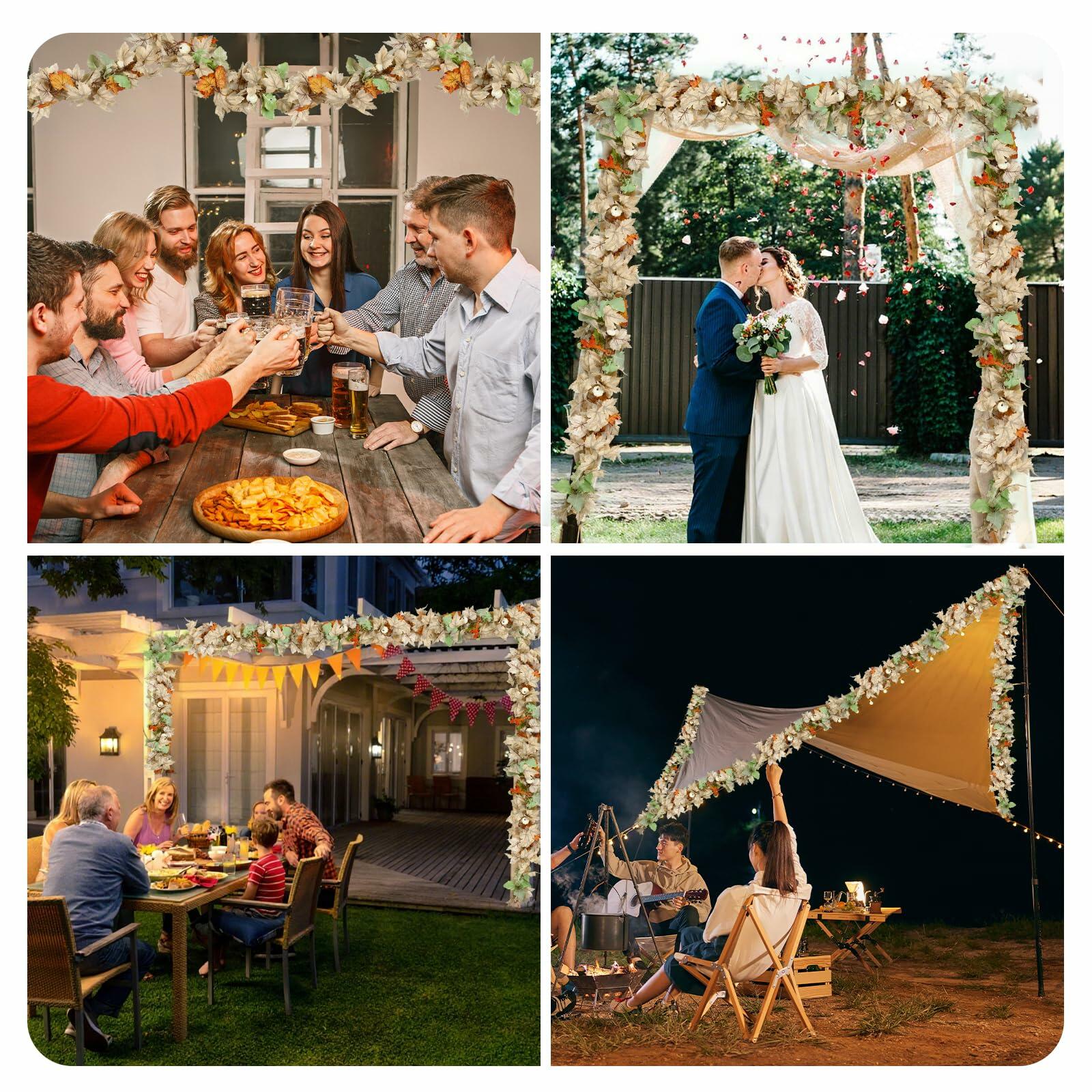- Festive Decor for Fall Celebrations: With its lifelike appearance and vivid colors, this maple garland is perfect for adorning fireplaces, arches, backdrops, table runners, or even as part of a wreath. Its versatility makes it easy to incorporate into any setting. Wherever you place it, it instantly infuses your space with the warmth and beauty of autumn.