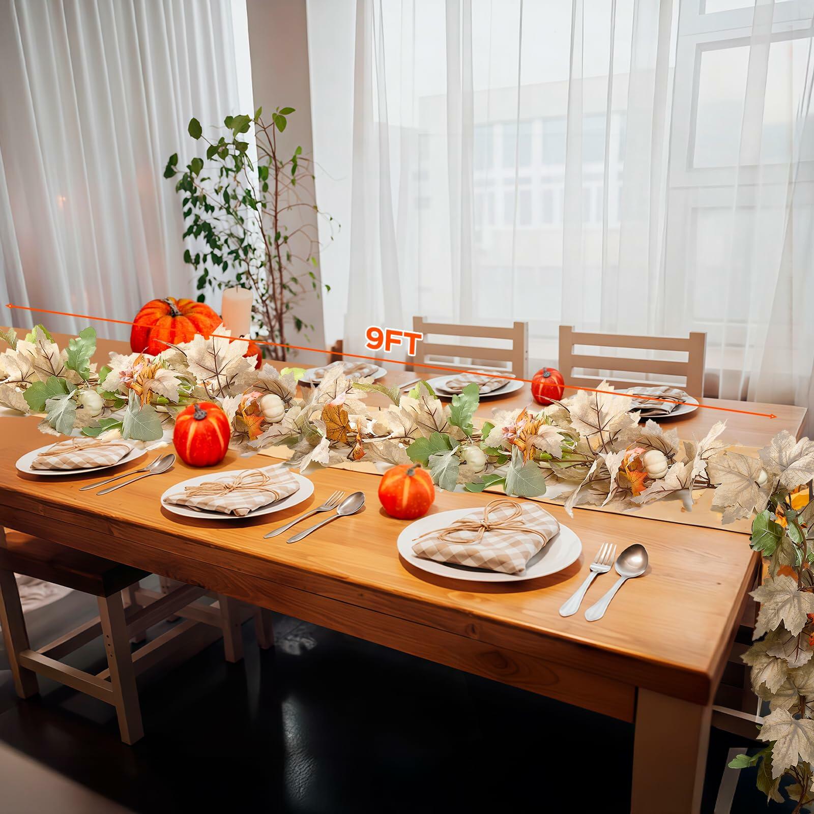 Fall Decorations for Home Fall Garland with White Pumpkins Maple Leaves Thanksgiving Garland for Outdoor Indoor Harvest Mantle Fireplace Table Centerpiece Halloween Fall Decor (1Pack)!