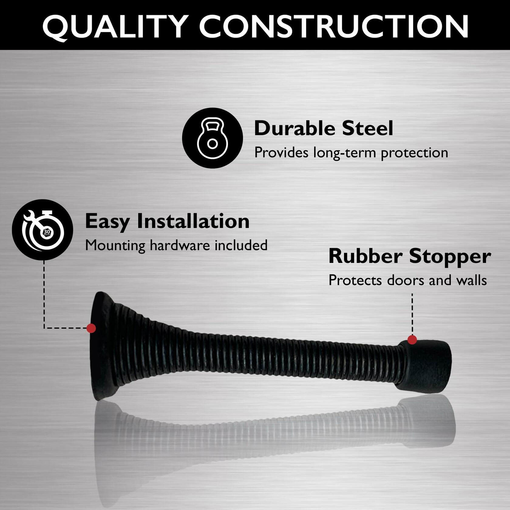 - Durable Construction: Heavy-duty door stoppers constructed with 100% steel to ensure durability while still being stylish in the sleek matte black finish