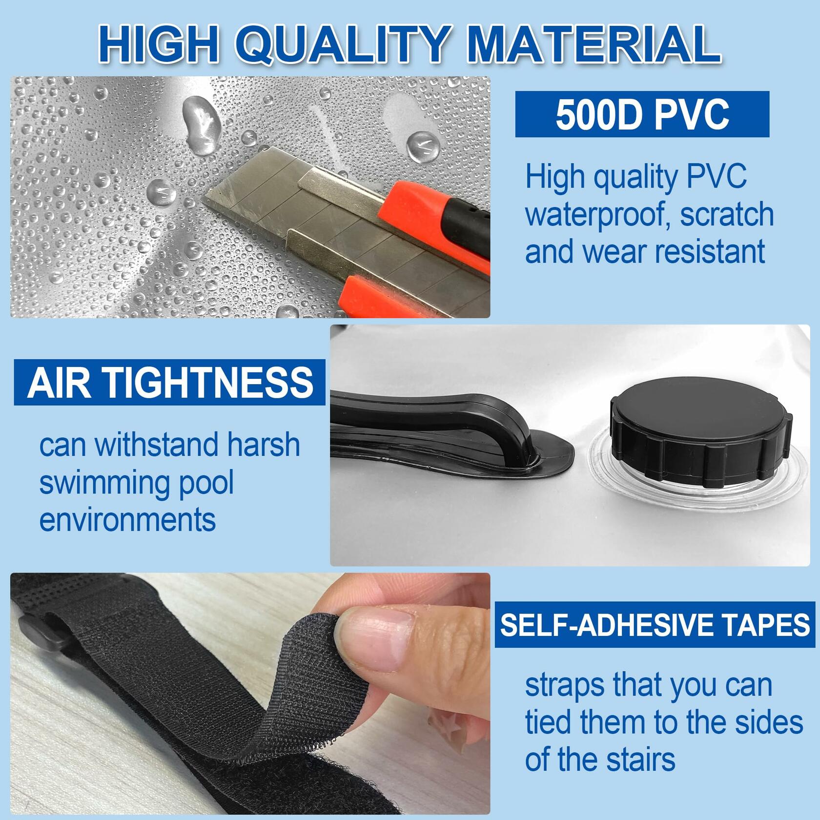 This is 2PCS swimming pool ladder weights with self-adhesive tapes, 10l heavy duty pool step weights, 500d pvc pool ladder sand bags for weight, waterproof dry bag for above ground pool steps