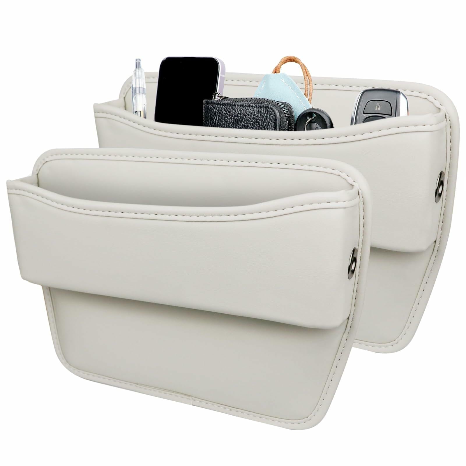 DewyLeaf Car Seat Gap Filler Organizer Leather Front Seat Storage Grey 2 Pack