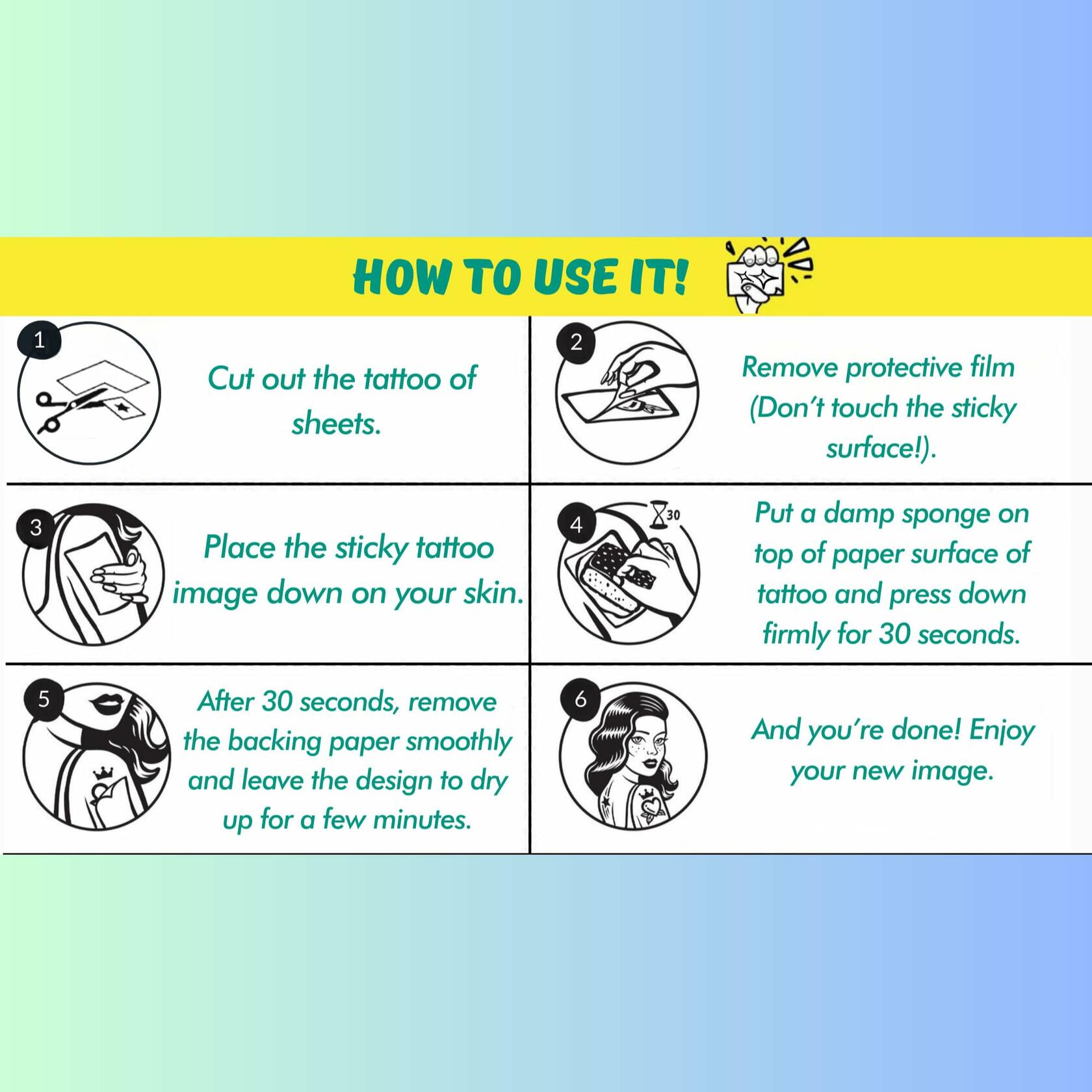 - Safe and Easy to Use: Made from skin-safe materials, these tattoos are hypoallergenic and easily removable with baby oil or warm water.
