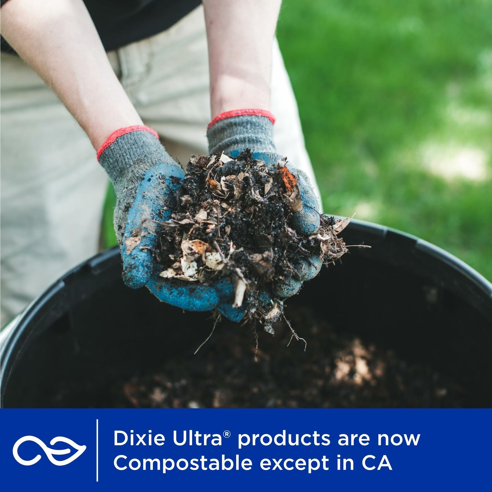 - Responsibly Made: Dixie Ultra large paper plates (10 1/16") deliver the same strength and performance, but with the added benefit of being compostable except in California