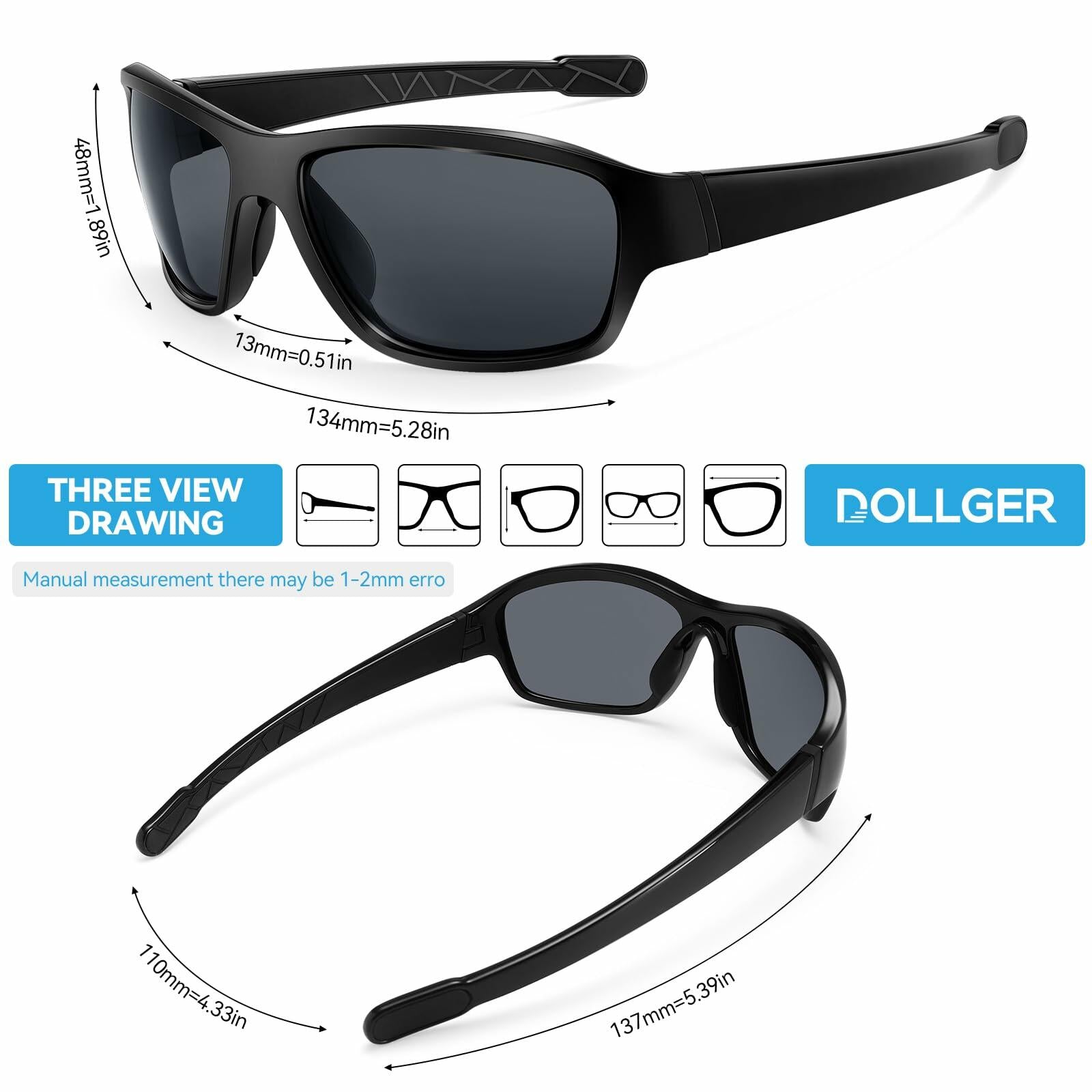 - 【POLARIZED SPORTS LENS】The Dollger polarized sunglasses men are made of HD Polarized lens which can block 100% harmful UVA & UVB Rays to protect your eyes perfectly, and meanwhile keep the original color, improving visual clarity and contrast effectively. Through these sports sunglasses, reflected and scattered light will be eliminated easily, making the scenery more clear and softer.