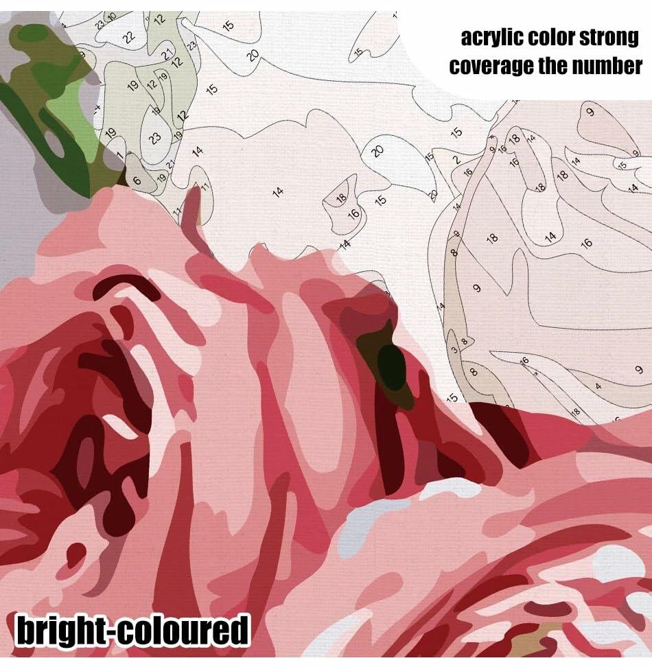 - WHAT YOU WILL GET – 1 pre-printed cotton and linen canvas (16"W x 20"L, without frame), 1 set of high-quality acrylic paint, 3 pcs brushes, 1 color postcard guide, 1 paper copy of numbered canvas for reference, hook, packaged in an elegant giftable box.