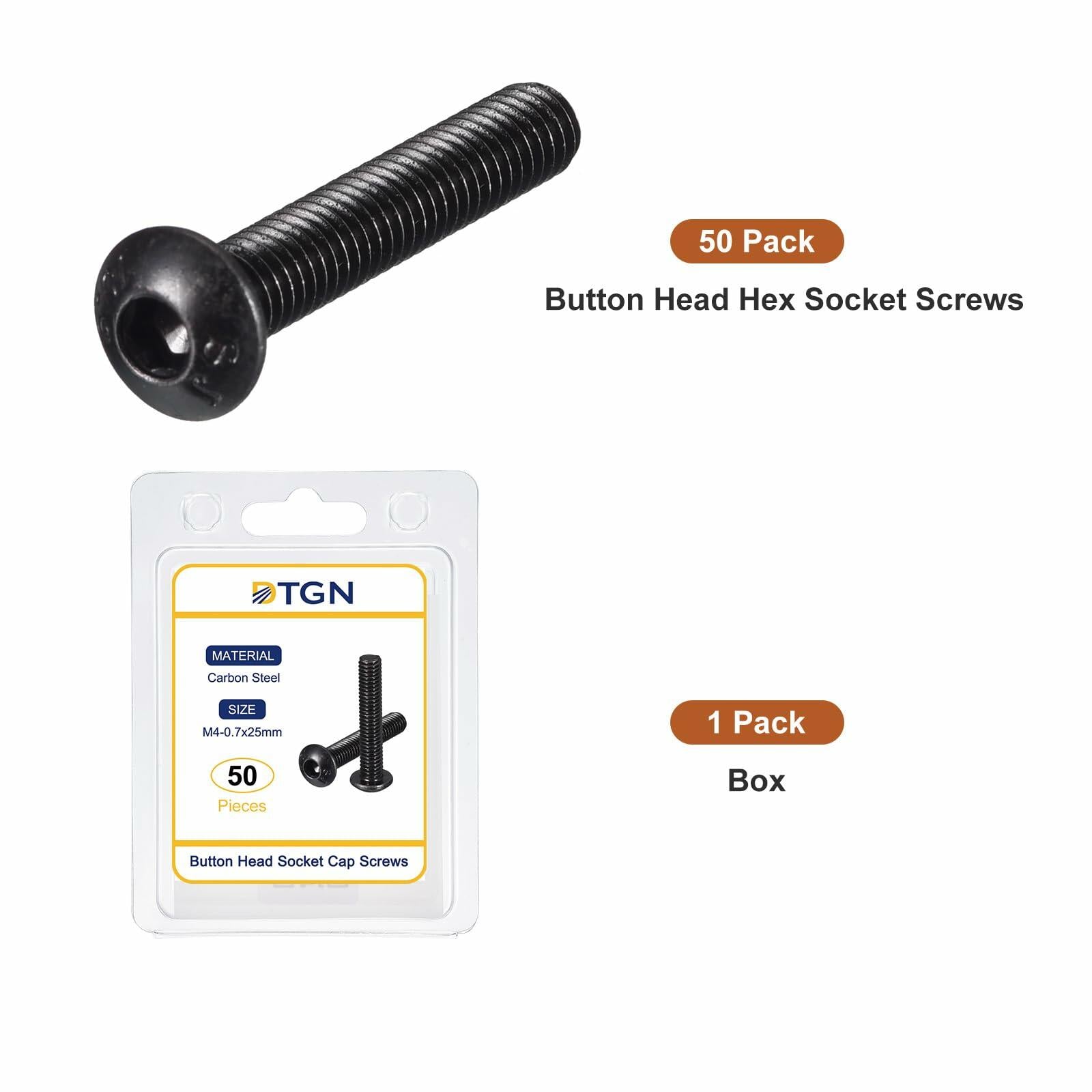DTGN M4-0.7x25mm Button Head Socket Cap Screws 50pcs Black Carbon Steel Hex