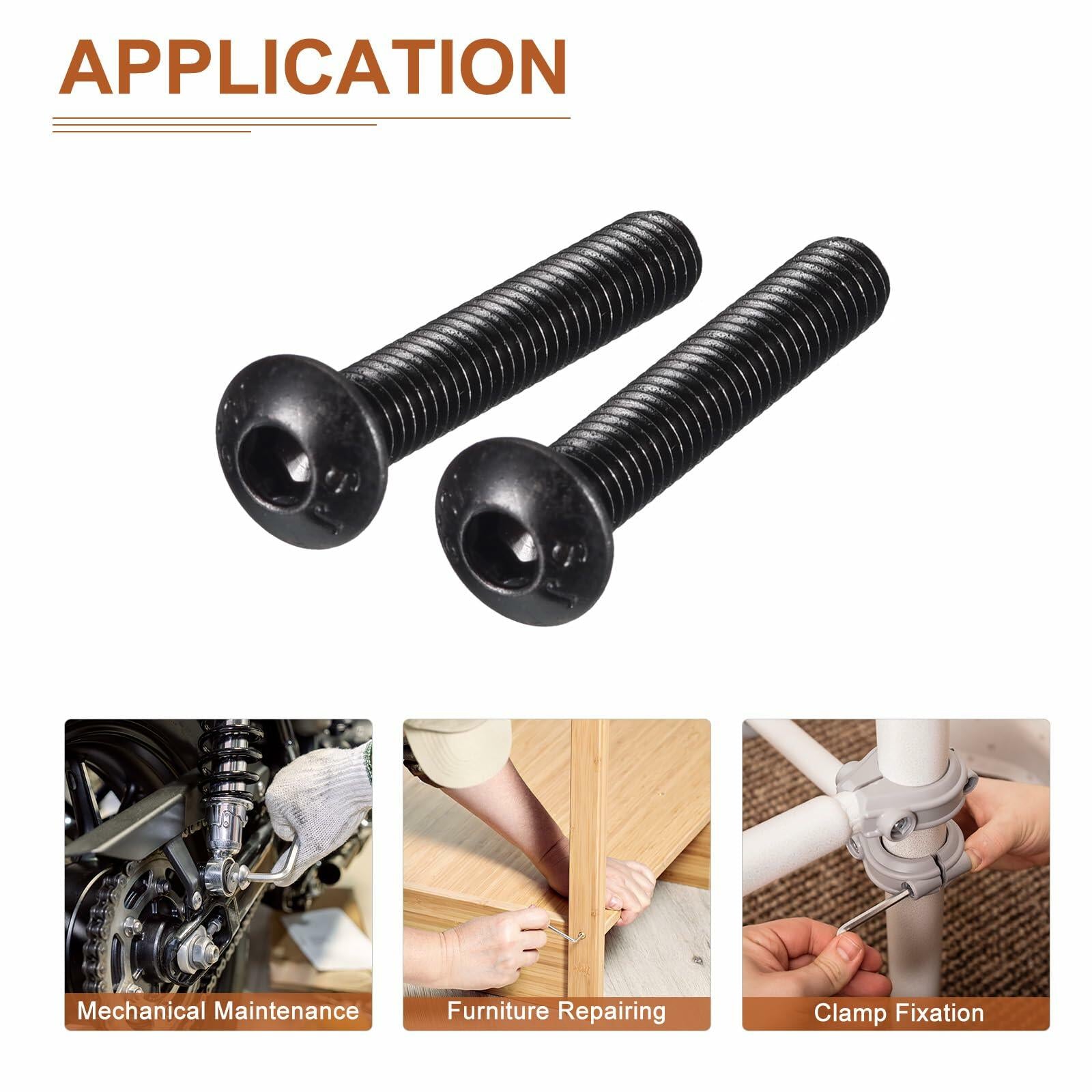 Material - Constructed with carbon steel material with blackening treatment, the hex socket cap screw is of stronger durability, has a bright appearance, is not easier to deform or corrode, and has a long service life than other surface finishes.