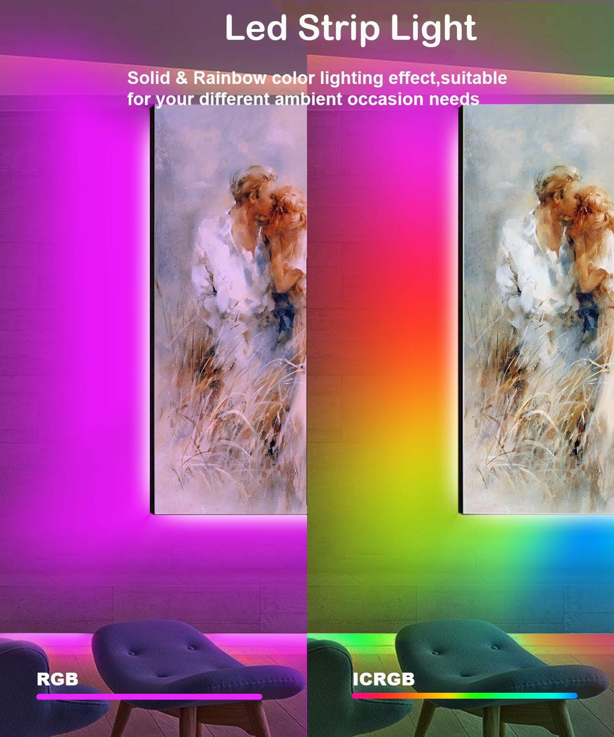 - Dual Visual LED Lights:With 16 million solid color choices and 200+ dynamic flashing rainbow color lighting effects, our DTQJ ICRGB LED strip lights will bring fancy mood lighting to your movie, party, Gaming and any lighting needs of your room! LED lights suitable for bedroom, living room, home theater, room decorations, party and holiday celebrations like Halloween and Christmas as indoor room lights.
