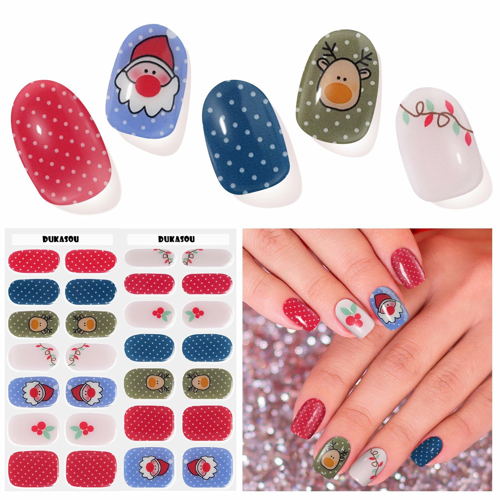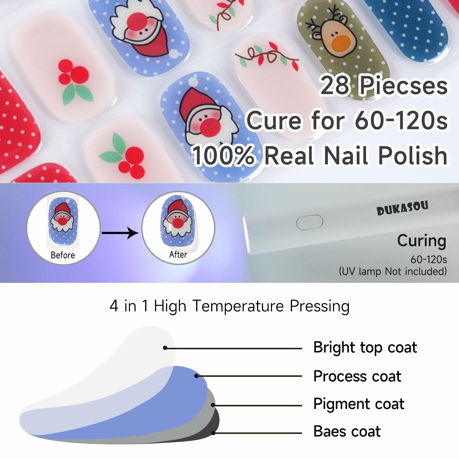 DUKASOU Christmas Semi Cured Gel Nail Strips Santa Claus 28 PCS UV Light
