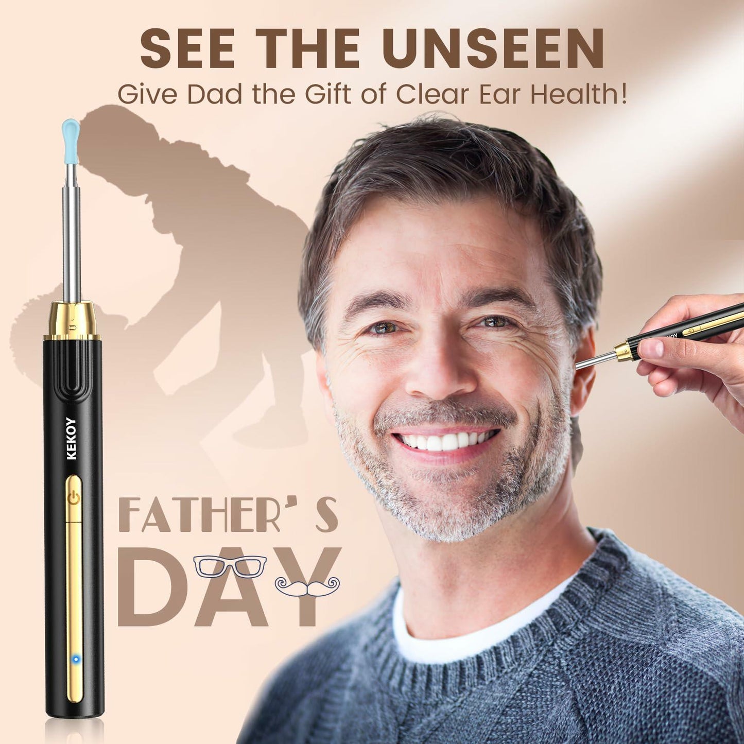 Kekoy Ear Cleaner with Camera, 1296P HD Ear Wax Removal Tool Camera, WiFi Otoscope with Light for Ear Cleaning, Father's Day Gift Ear Endoscope with 8 pcs Ear Set - P8 (Gold for Papa)