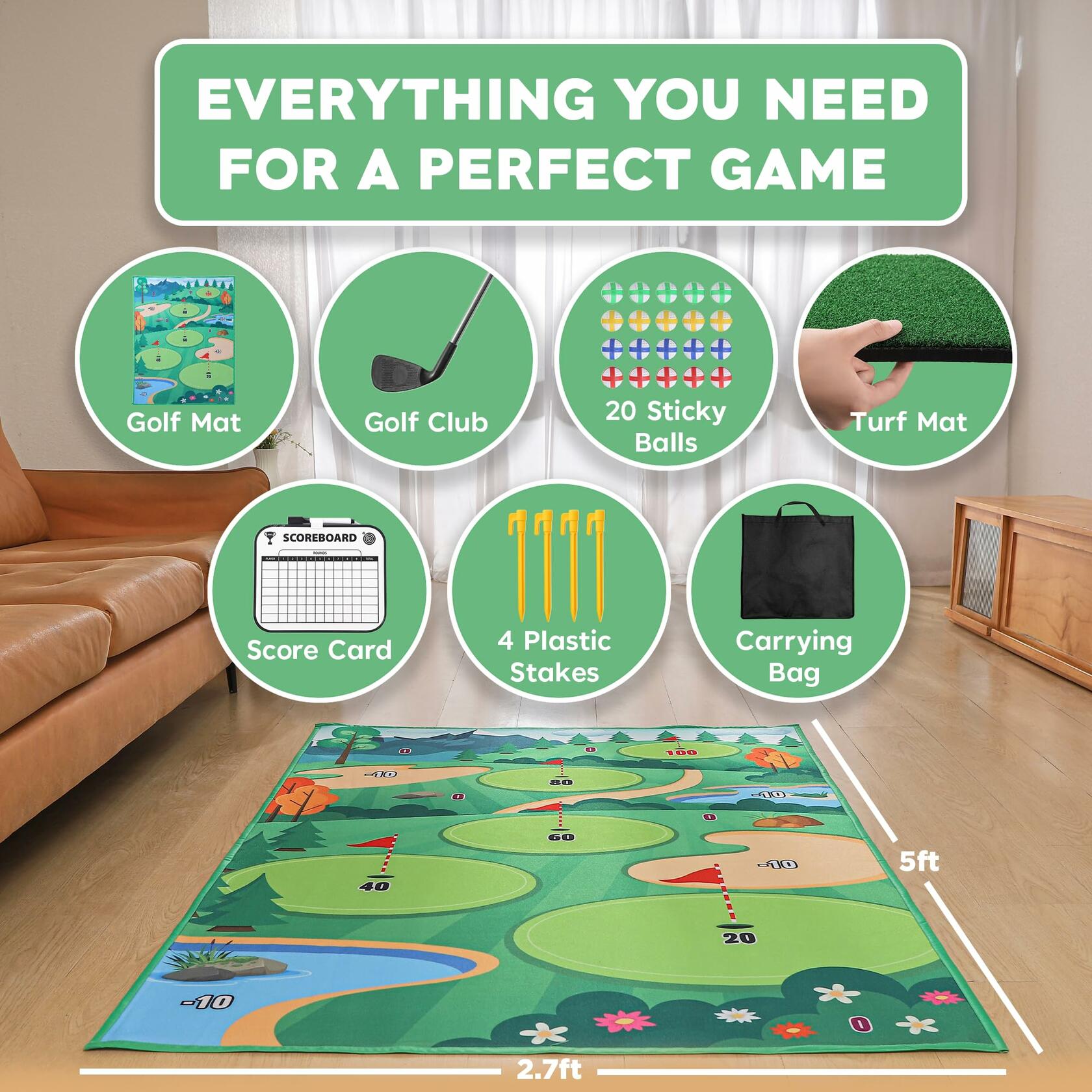 - Golf Mats Practice Indoor: Fine-tune your short game effortlessly with our engineered chipping club, striking the perfect balance between precision and control. Tailored for golfers, it enhances your overall performance.