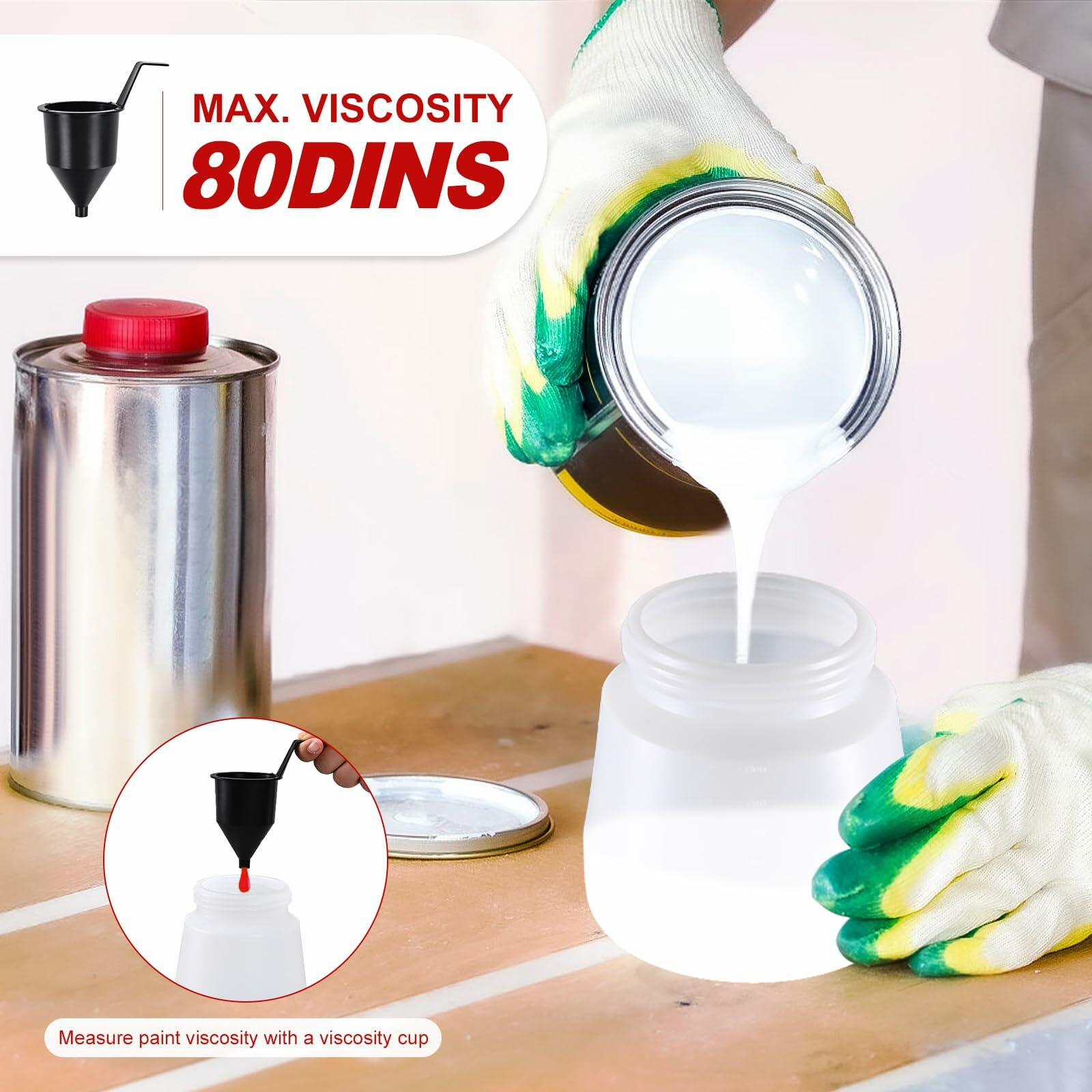 - Wide Applicability: With a maximum viscosity of up to 80-DINs, the electric paint sprayer can handle a wide range of paint types, such as latex paint, varnishes, stains, sealers and chalk type paint. This paint gun is more efficient with a large 800ml container, suitable for home interior and exterior, house painting, walls, fence, wood, furniture, cabinets, decks, DIY works, etc...