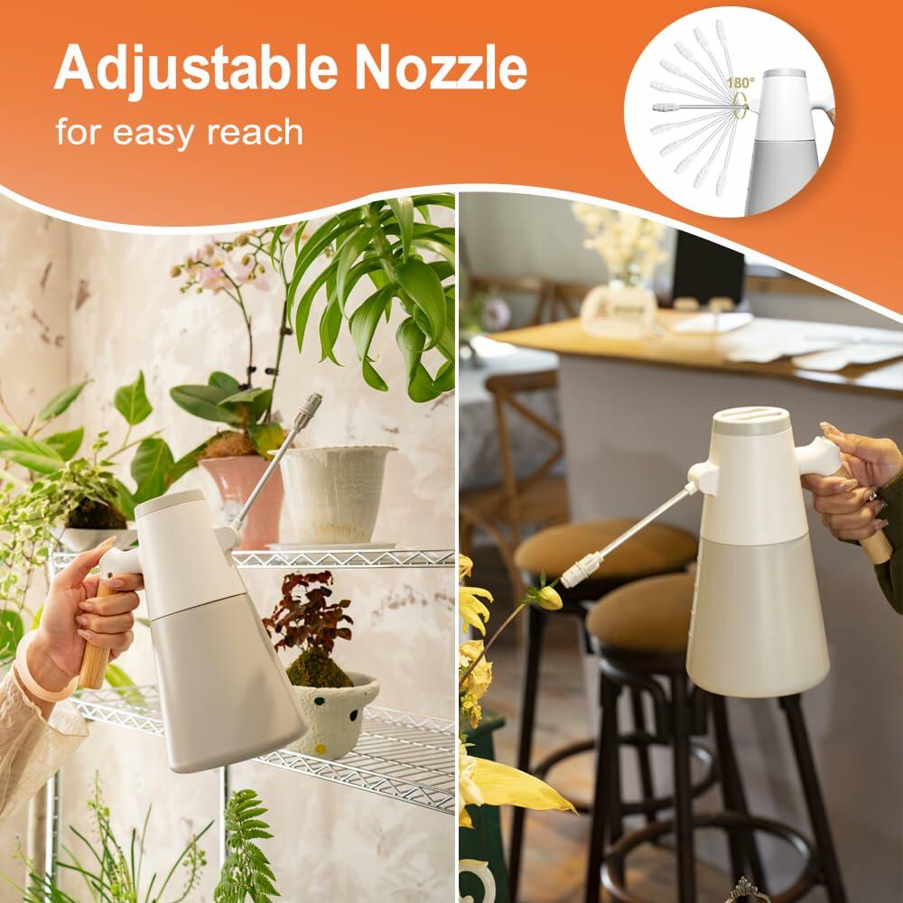 - 【2-in-1 Adjustable Spray Nozzle with Extended Reach】 Easily switch between a focused water jet and a fine fan-shaped mist with a simple twist. The 180° pivoting, long spout allows for precise watering, reaching deep into pots and tight spaces to ensure every leaf and root gets the moisture it needs.