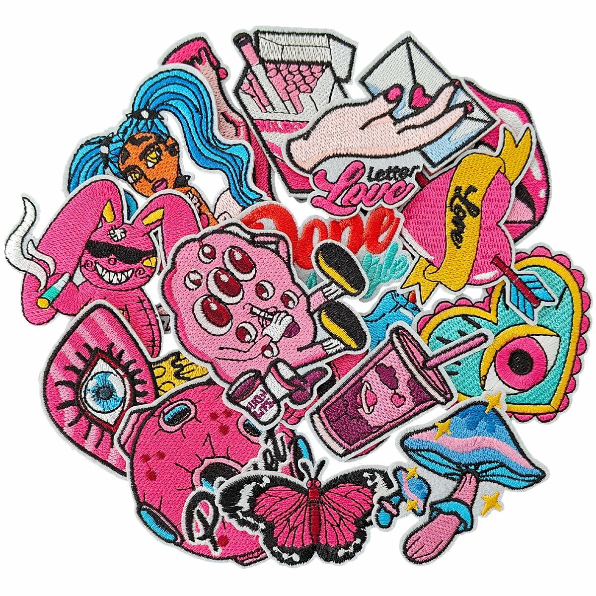 ELEFOCUS 16Pcs Pink Iron-on Patches Applique for Clothing