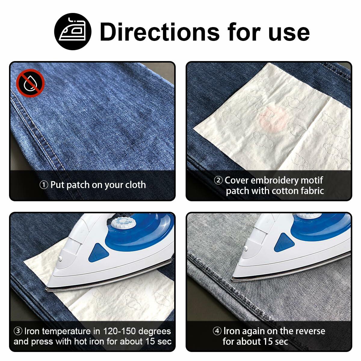 - A fun way to make garment repairs or cover up tears or holes. Perfect patches for jeans, shirts, hoodies, tops, bags, hats, backpacks, socks and more. Personalize your accessories with these patches!