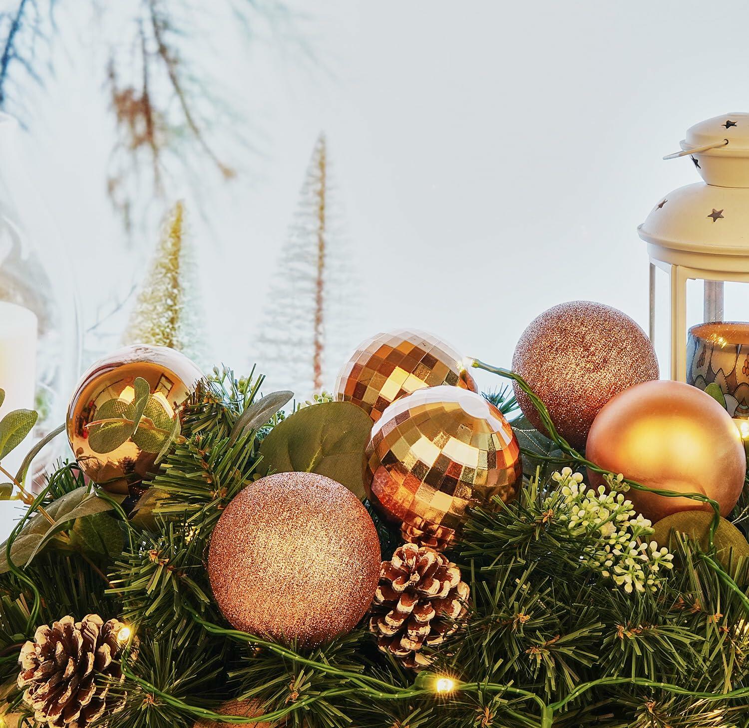- 【PERFECT FIT】These Small Christmas Balls Set make great addition to your Christmas and holiday decoration. Perfect home decor for a variegated display of Christmas, wedding, engagement, anniversary, party, as hanging ornaments on tree branches, table centerpieces, around banister, above reception at different lengths, etc. It is also a great choice for commercial holiday decorations.