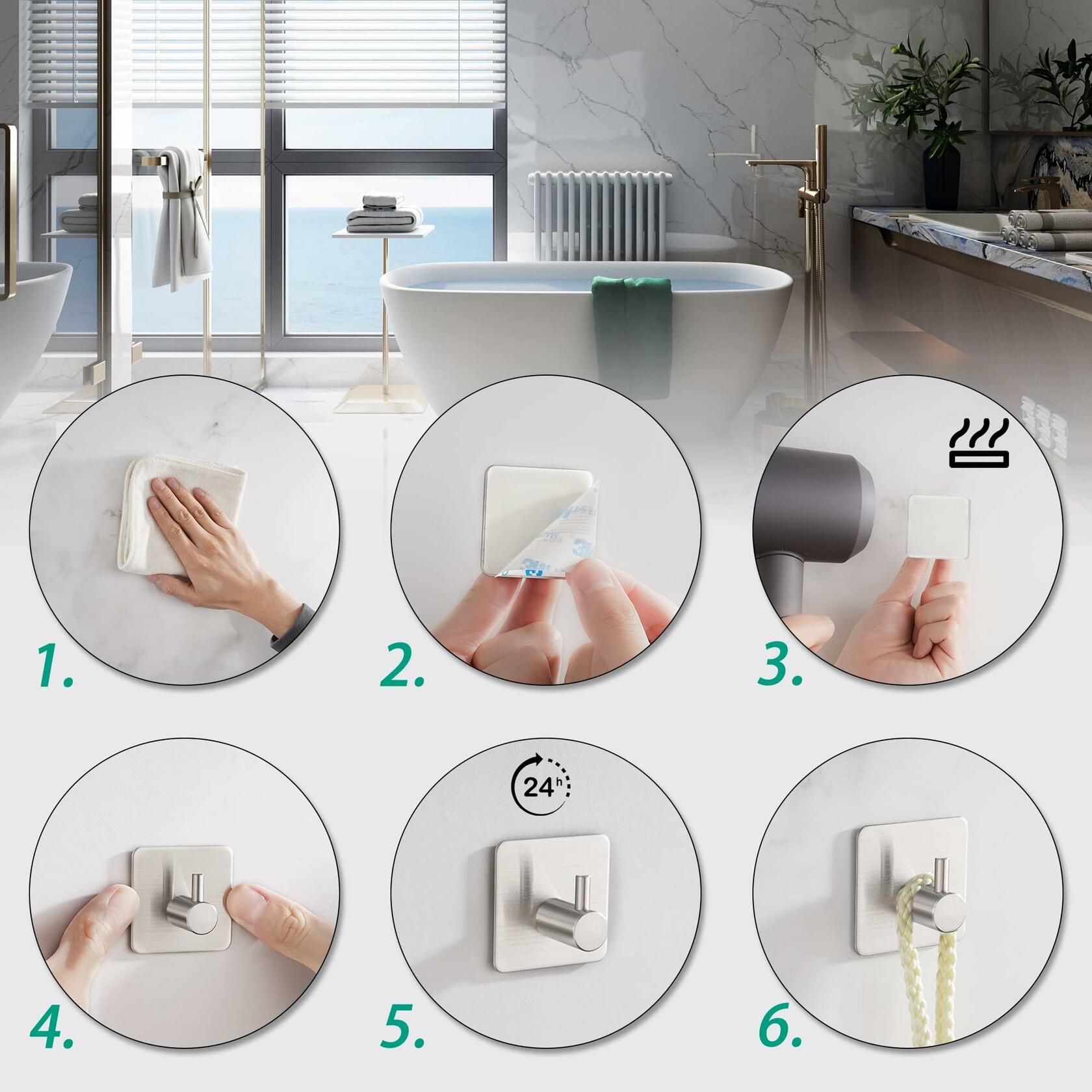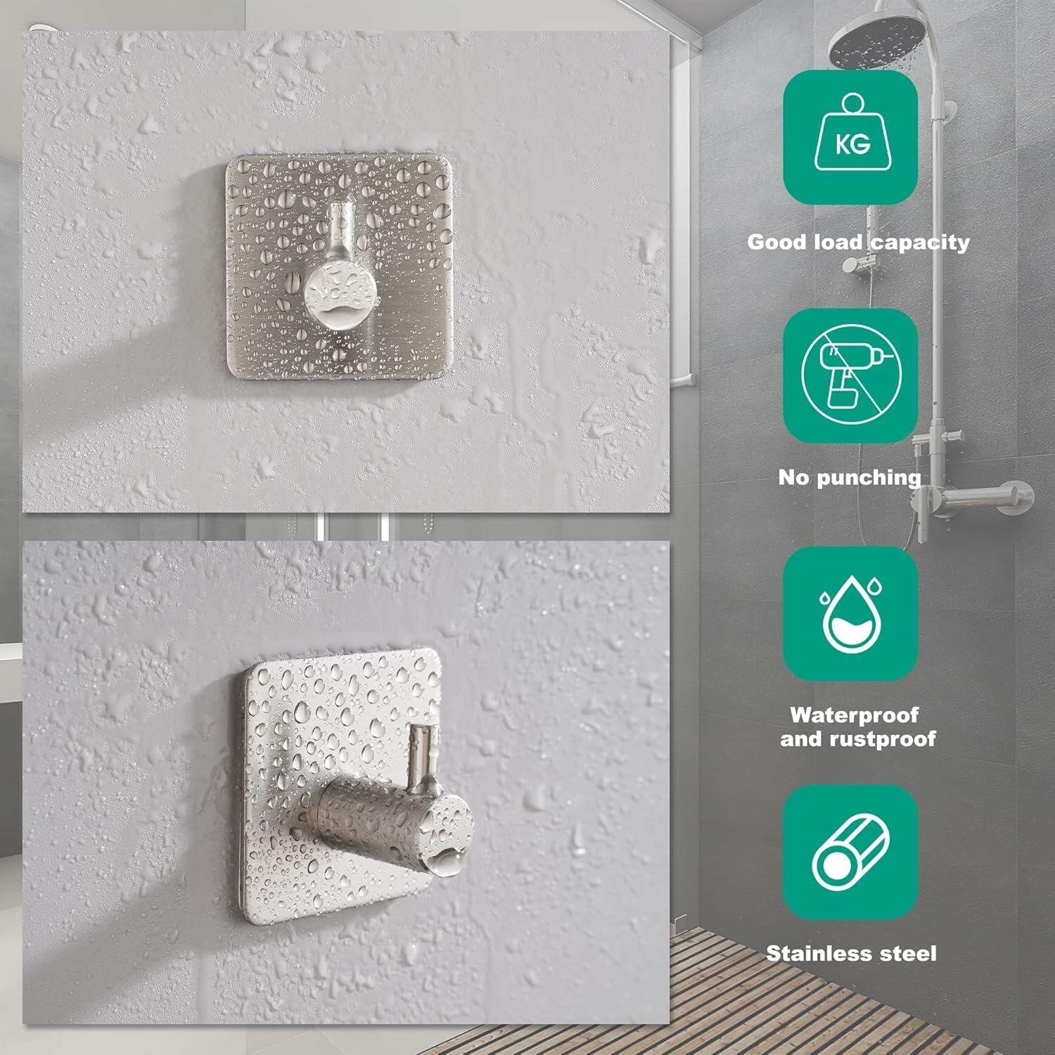 - 【WATERPROOF FUNCTION】Towel hooks are made of SUS stainless steel, compact and sturdy with strong load-bearing capacity. Waterproof, rust-proof, moisture-proof and easy to clean, perfect for wet environments such as kitchens and bathrooms.