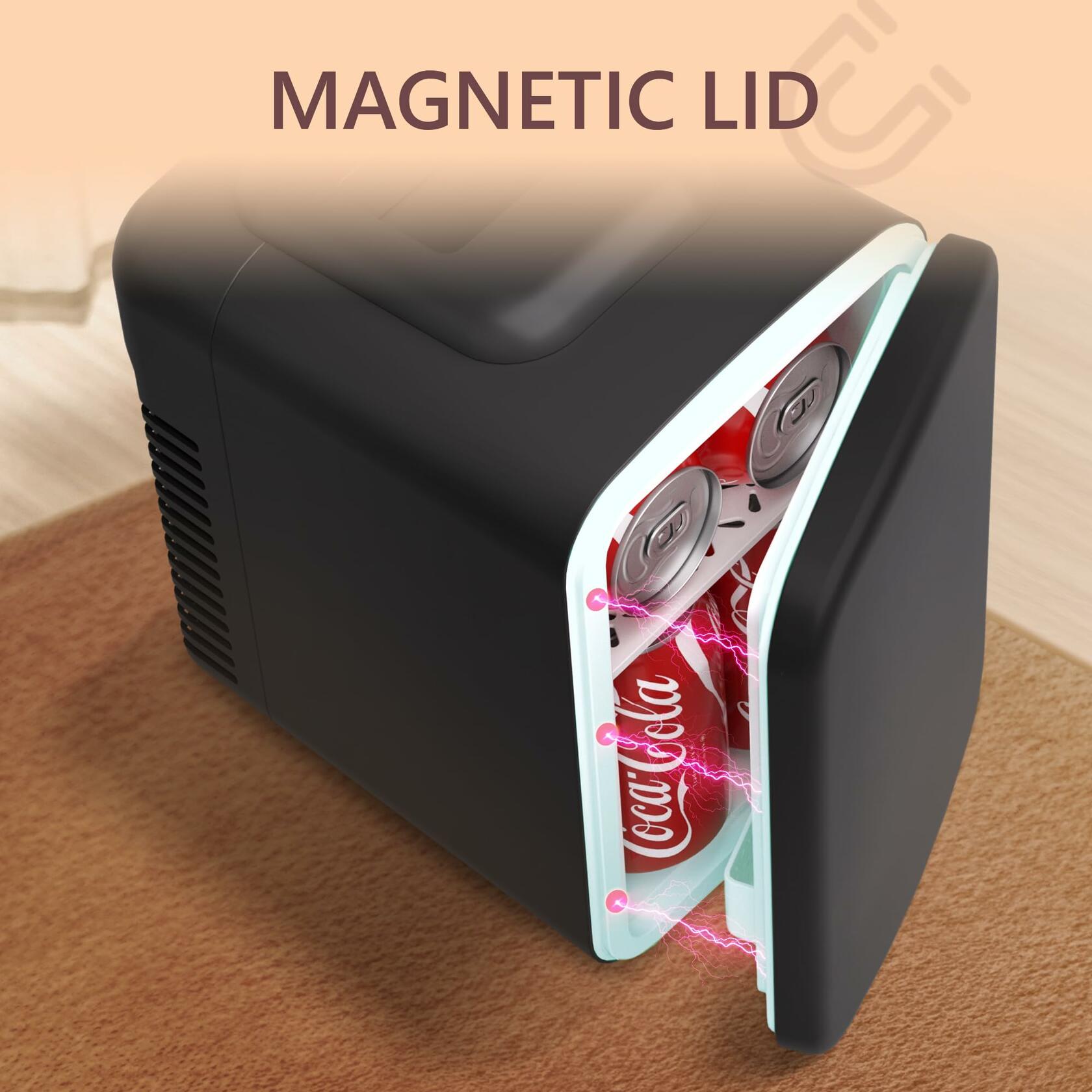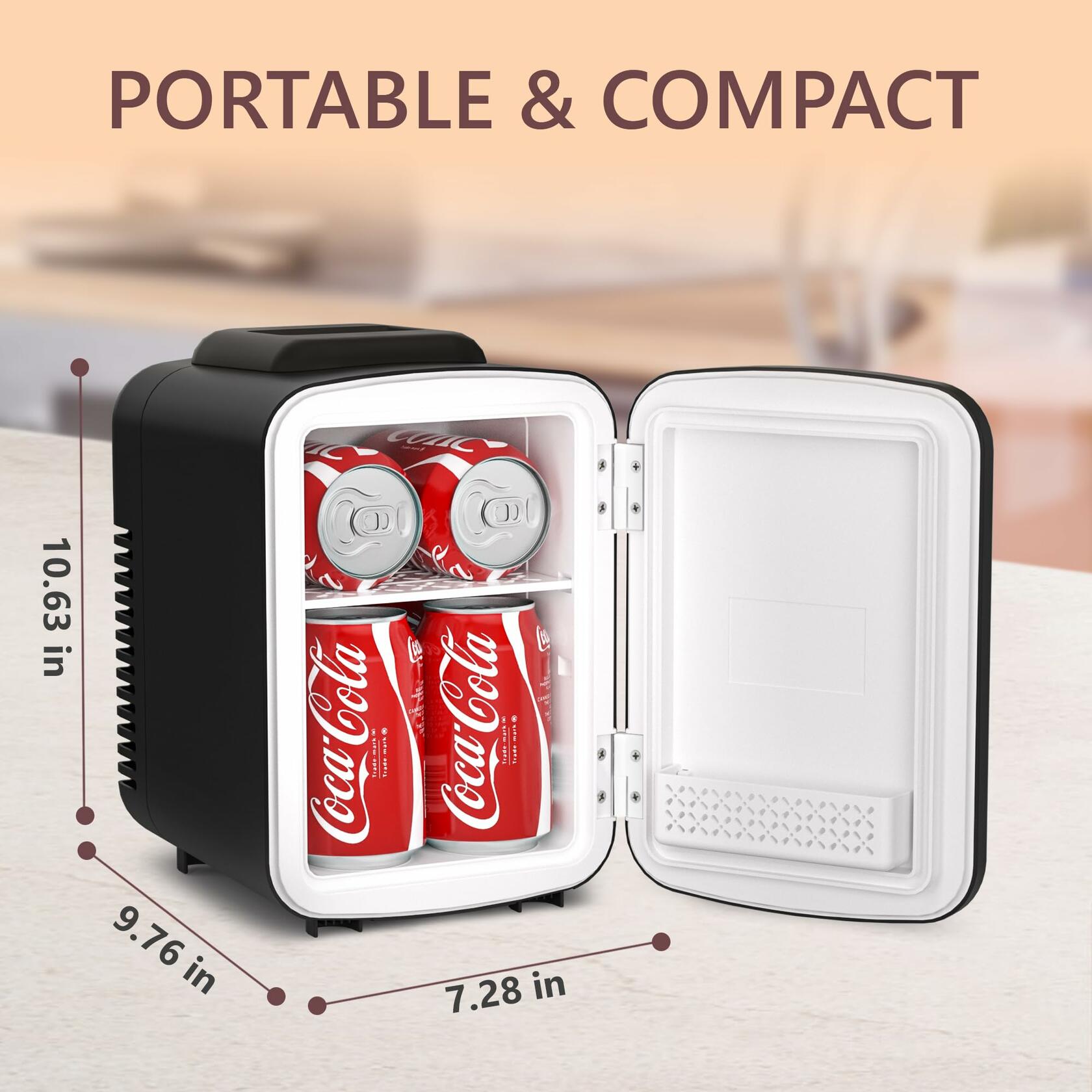 - Portable Compact Mini Fridge:The EUHOMY mini fridge has a capacity of 4 liters and can store up to six 12-ounce soda cans. The refrigerator comes with a convenient carrying handle for easy transport. Ideal for storing makeup and skincare products alike, this compact mini fridge is also available in a variety of trendy colors to suit your unique aesthetic and use. It is suit for bedrooms, cars, offices, dormitories, road trips, boats, campsites, etc
