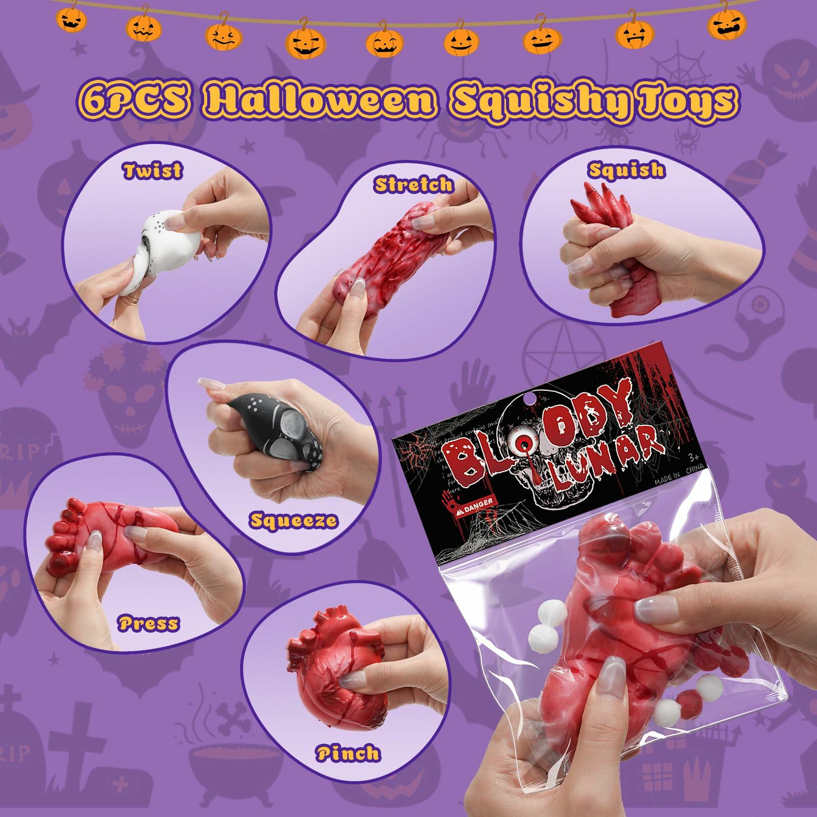 - Safe & Durable: Squishys kit is made with safe materials that pass toy safety tests, withstanding stretching or squishing. Critical Safety Notice: These Halloween squishies toys look shockingly real but are 100% NON-EDIBLE PRODUCTS - strictly keep away from mouths! Not suitable for children under 3 years due to potential choking hazards.