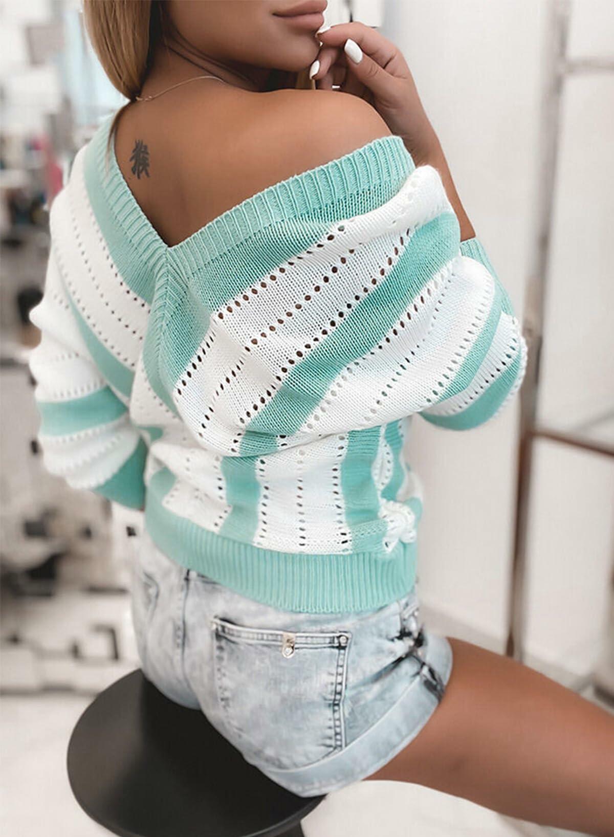 EVALESS Women's Purple Striped V Neck Color Block Sweater Size XL