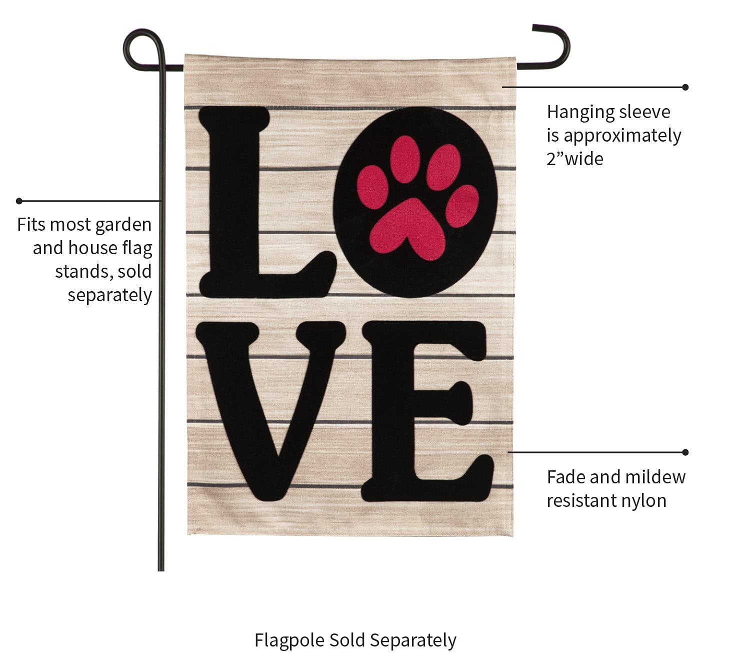 Evergreen Paw Print LOVE Garden Flag 12x18 Double-Sided Pet Lover Outdoor