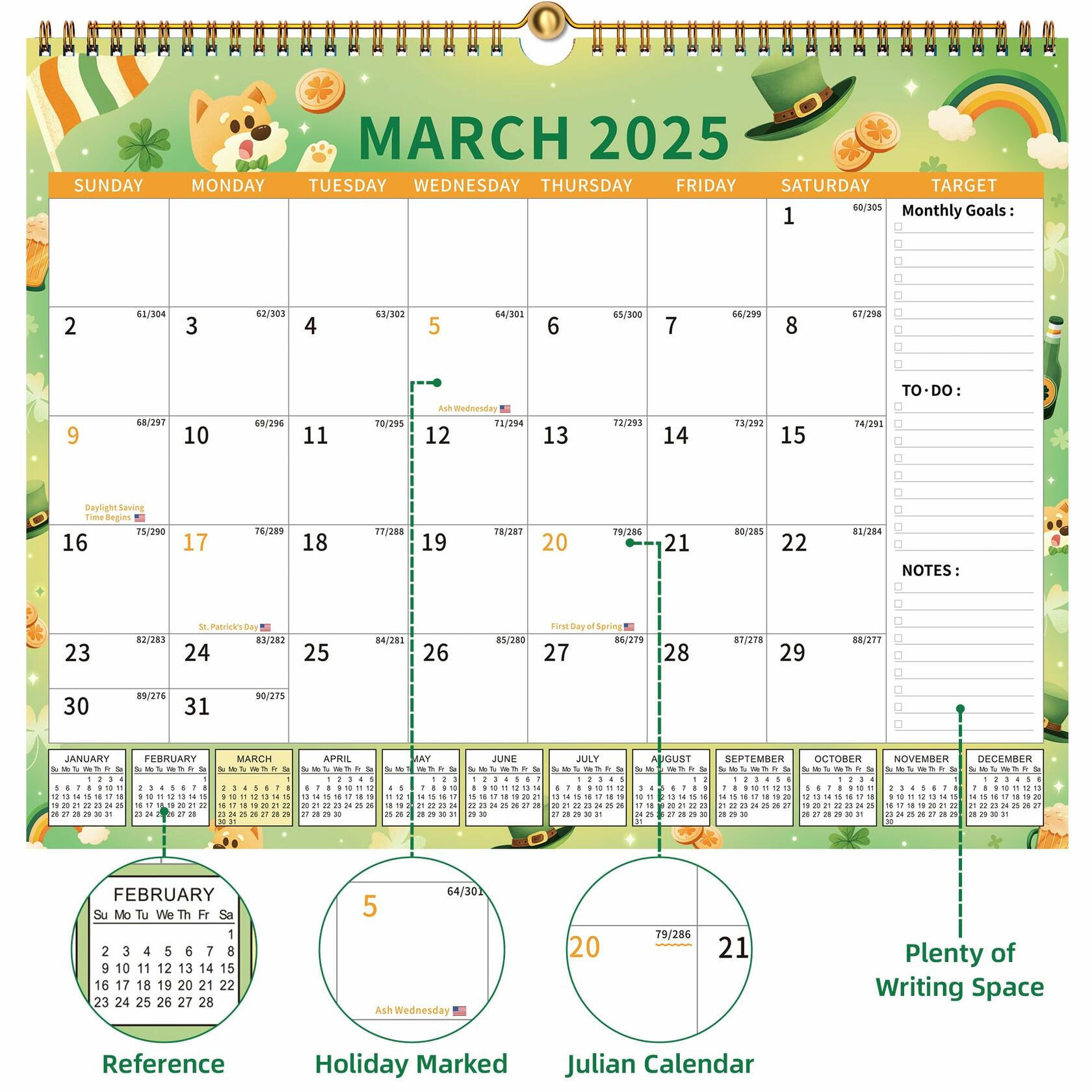 EYROZILL 2025 Wall Calendar Planner Hanging Spiral Bound Magnetic Pet 15x12