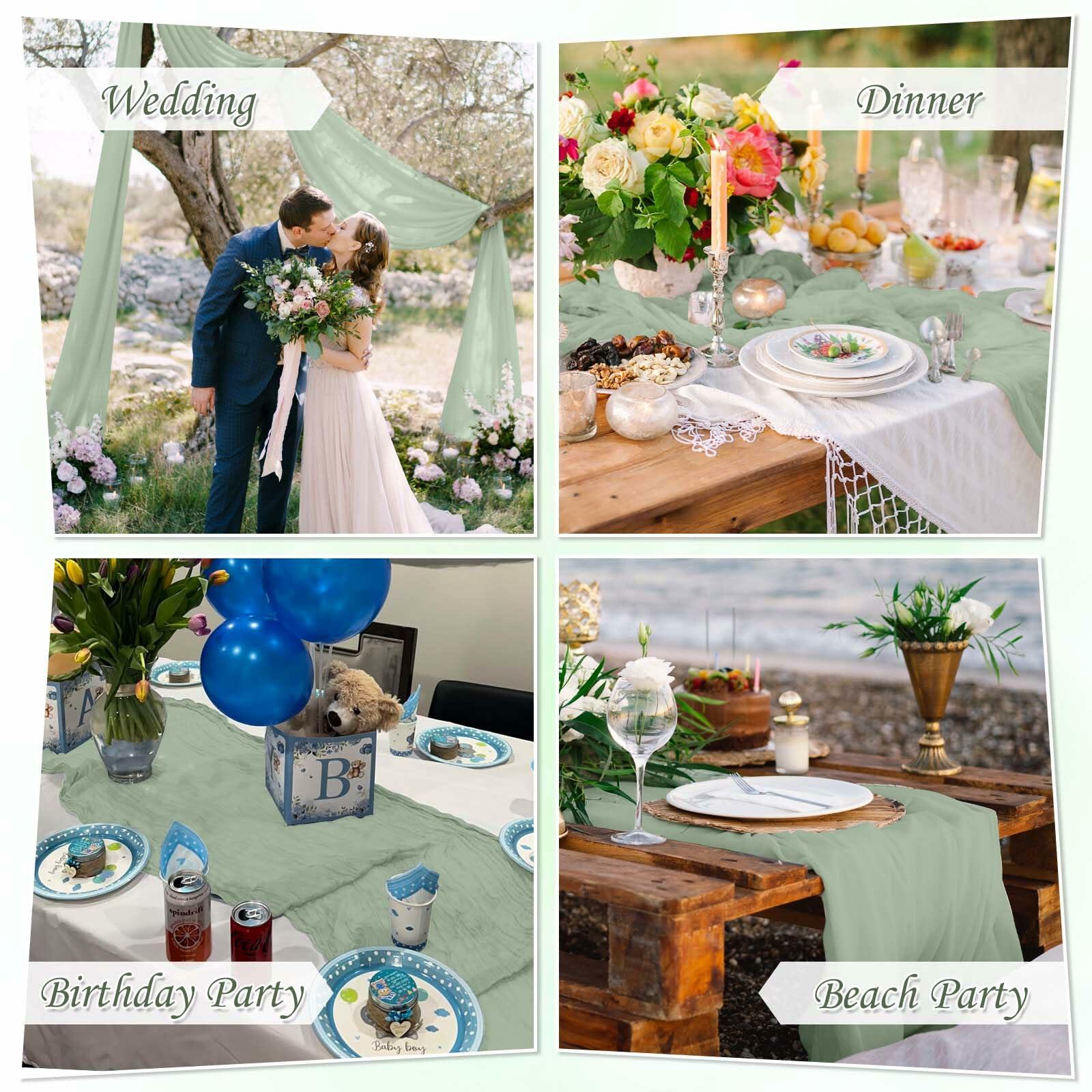 - 【PACKAGE INCLUDE】You will receive 1 pack of 35x120 inches sage green cheesecloth table runner,which is suitable for tables of any size,suitable for boho decor.