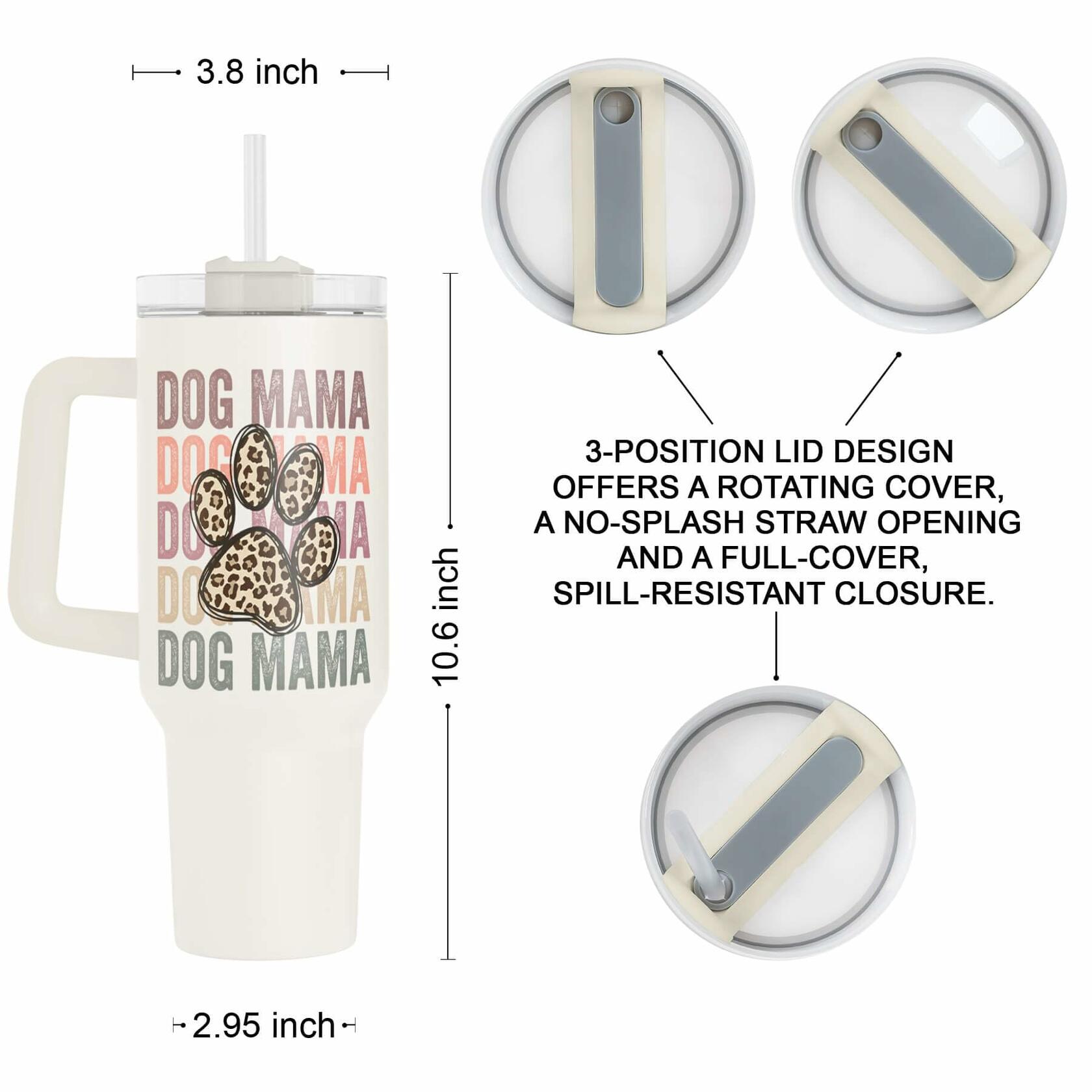 Fancyfams 40oz Stainless Steel Tumbler Dog Mama Handle Lid Straw Cream