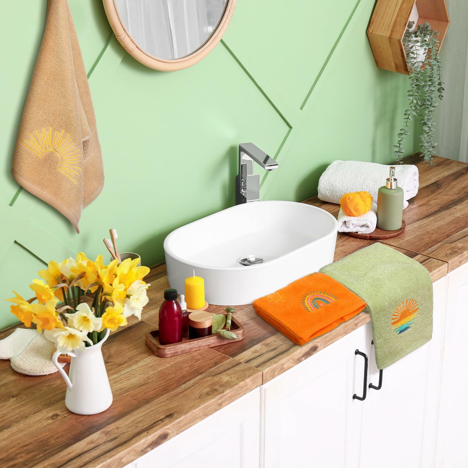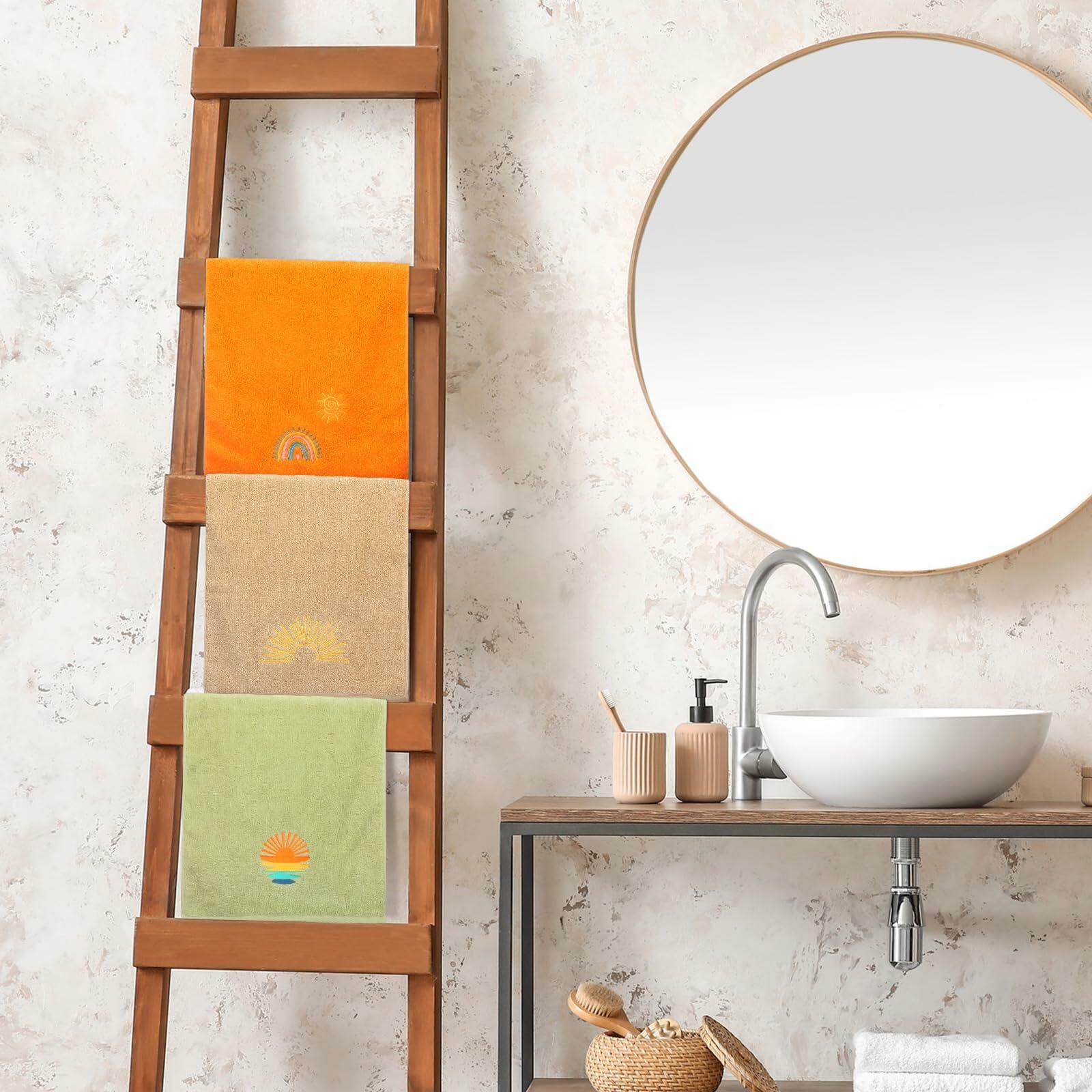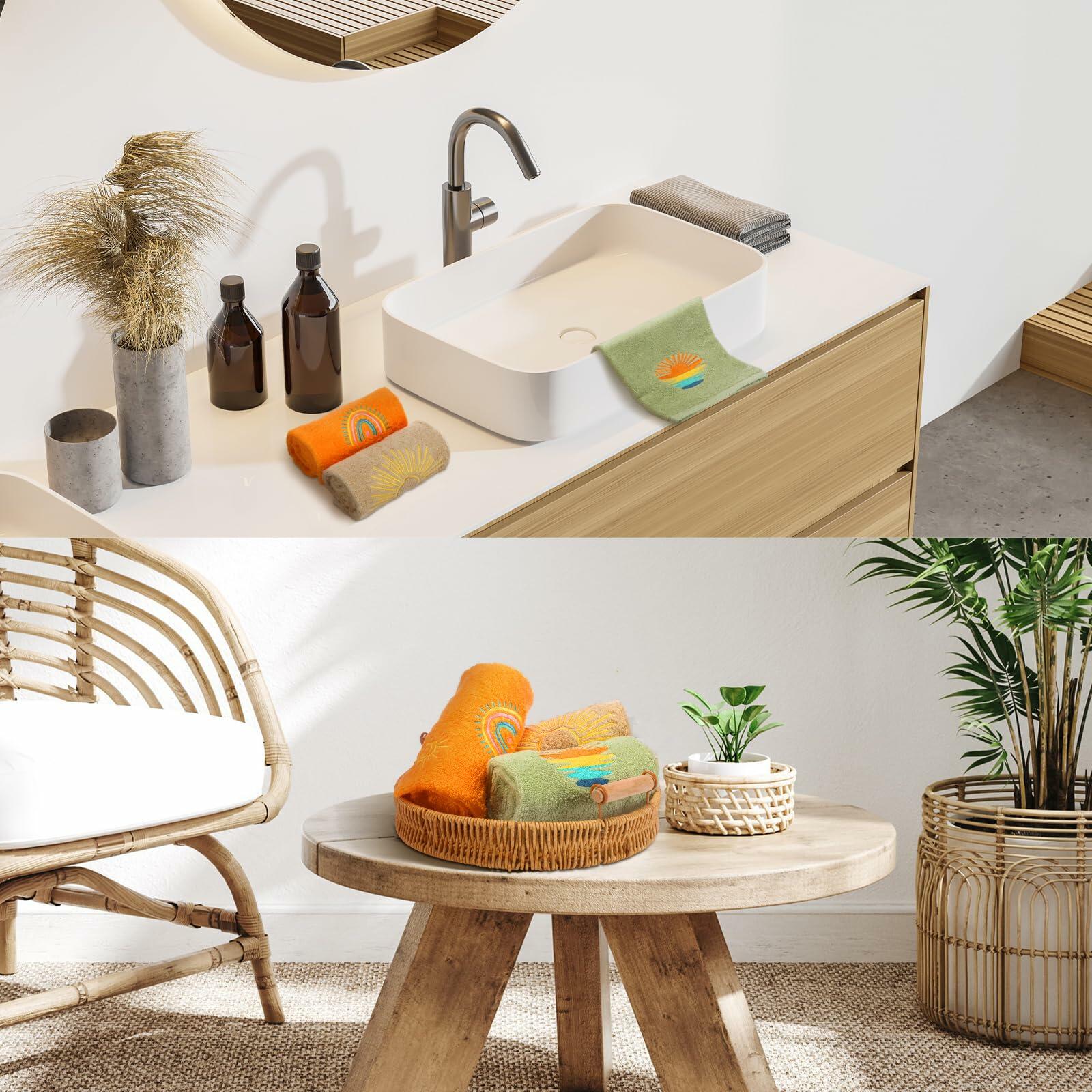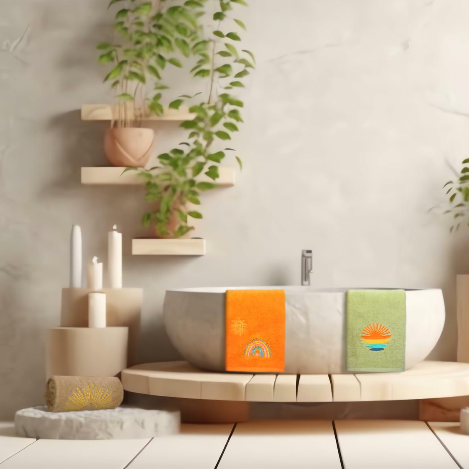 - Bohemia Design: kick off your festive celebrations with our exquisitely designed hand towels, featuring popular elements like rainbow and sun in classic colors such as orange gray green