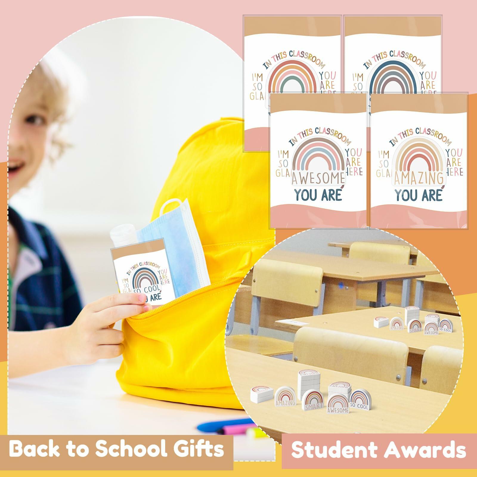 - Back to School Classroom Gifts: this mini erasers bulk set includes 80 sets of mini Inspirational erasers and greeting cards, ideal for classroom giveaways, student rewards, party favors, and back-to-school surprises; Enough quantity for teachers to share with students or parents to prepare for multiple gift bags