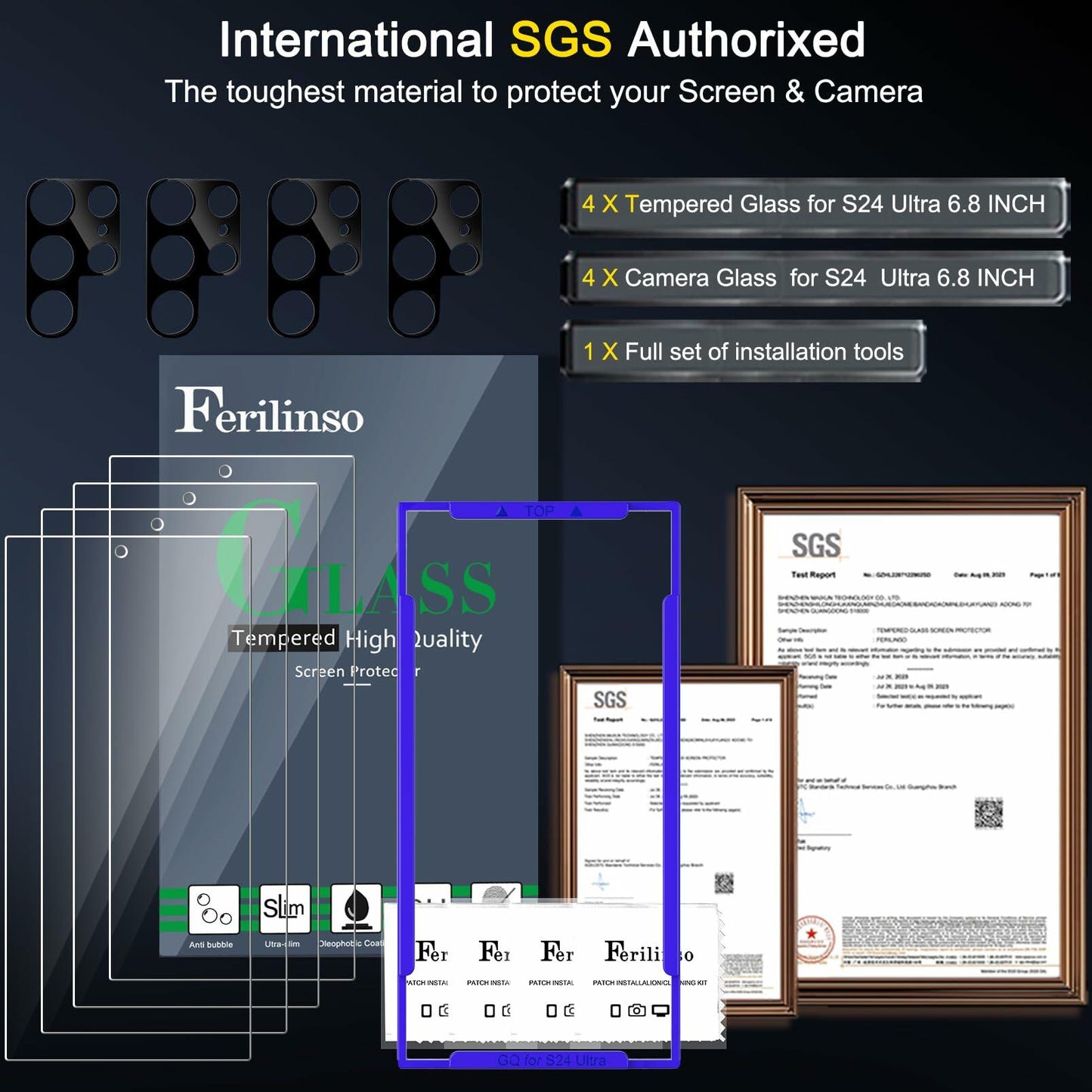 Ferilinso 4 Pack Screen Protector for Samsung Galaxy S24 Ultra with 4 Pack