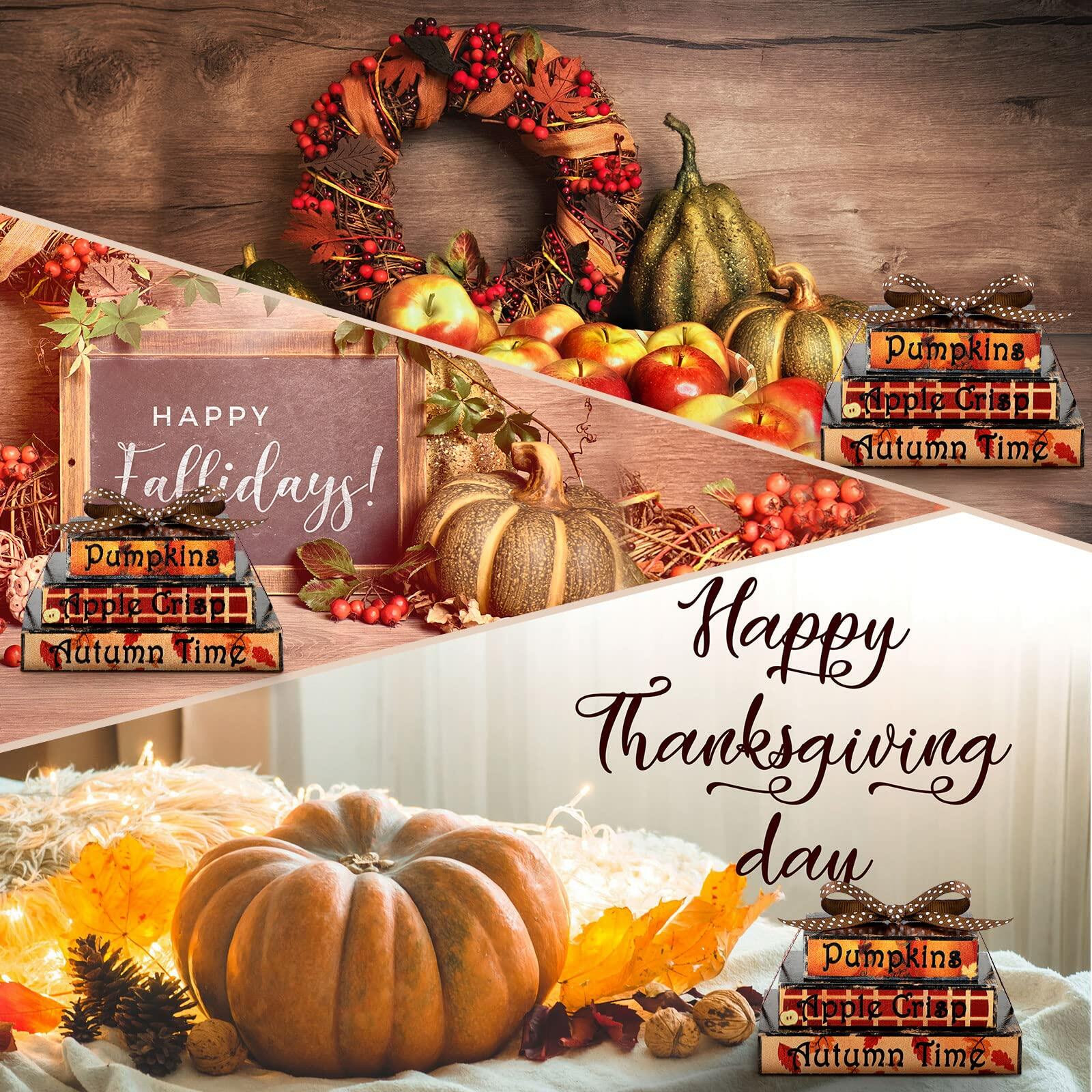 Ferraycle Fall Tiered Tray Decor Mini Books Pumpkin Wood Sign Farmhouse