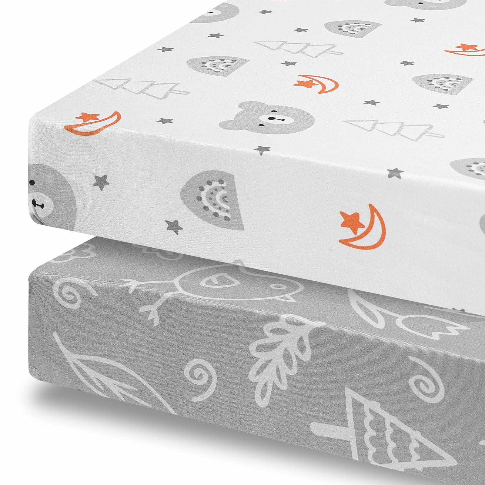 FHMJYH 2PC Super Soft Stretch Knit Crib Sheet Set Microfiber 52x28 Brown Beige