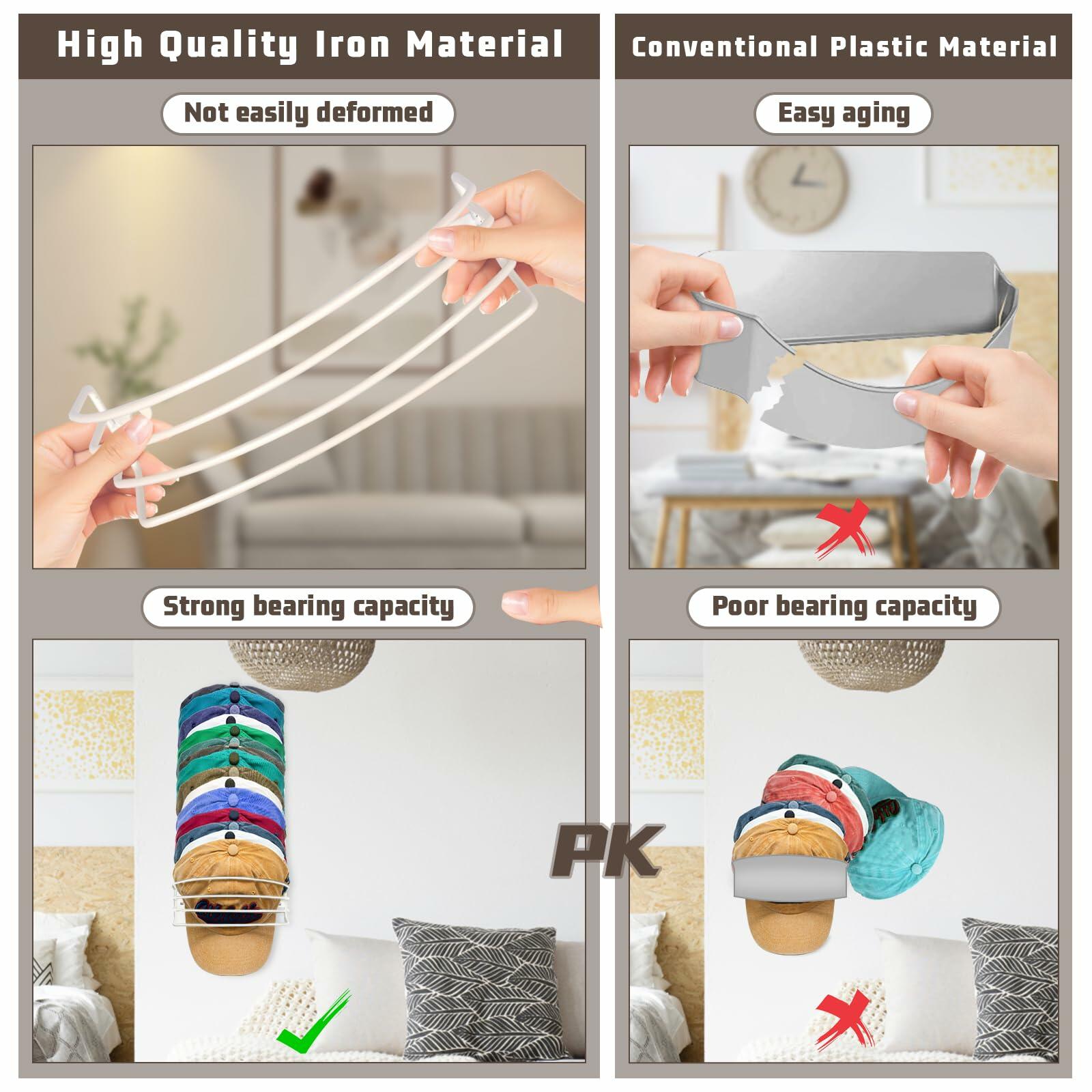 - 【Vertical Storage Pro|5-8 Hats per Hook】 L-shape stacks 5-8 caps vertically , doubling up to 15 caps with 2 hooks. Slim 2.95"" profile fits door/closet edges, saving 75% floor space vs traditional racks.