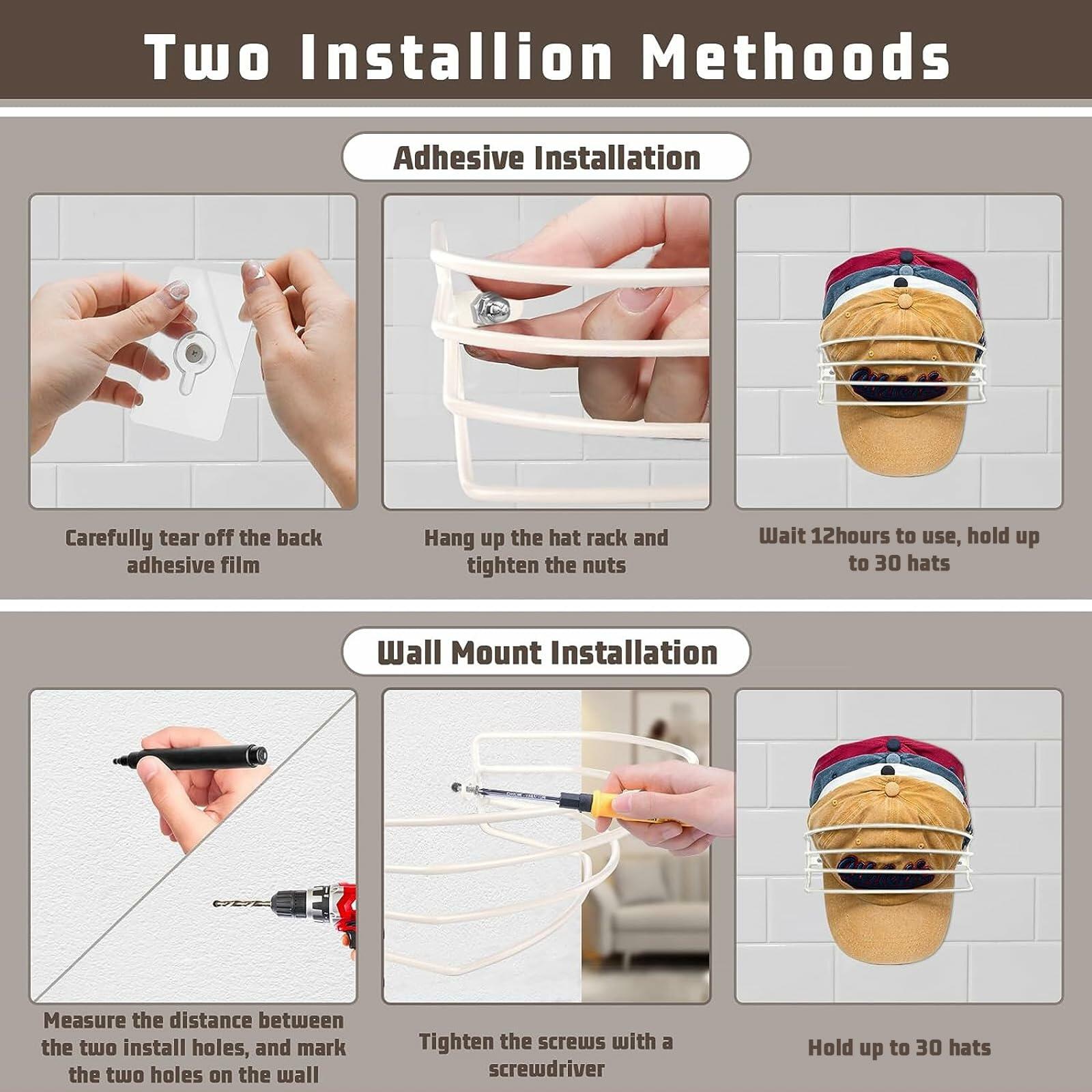 Fikoksol Space Saving Hat Organizer: Are you looking for a practical hat organization and storage solution for your growing collection? Look no further! Our hat rack for wall is just the thing for you! These L-shaped bonded hat hooks are made of high-quality aluminum and are each 5.91 inches long, providing enough space to safely store up to 30 hats. Our hat hangers for wall are fitted with sturdy adhesive pads that can withstand up to 30lbs of weight, ensuring your hats stay neatly organized.