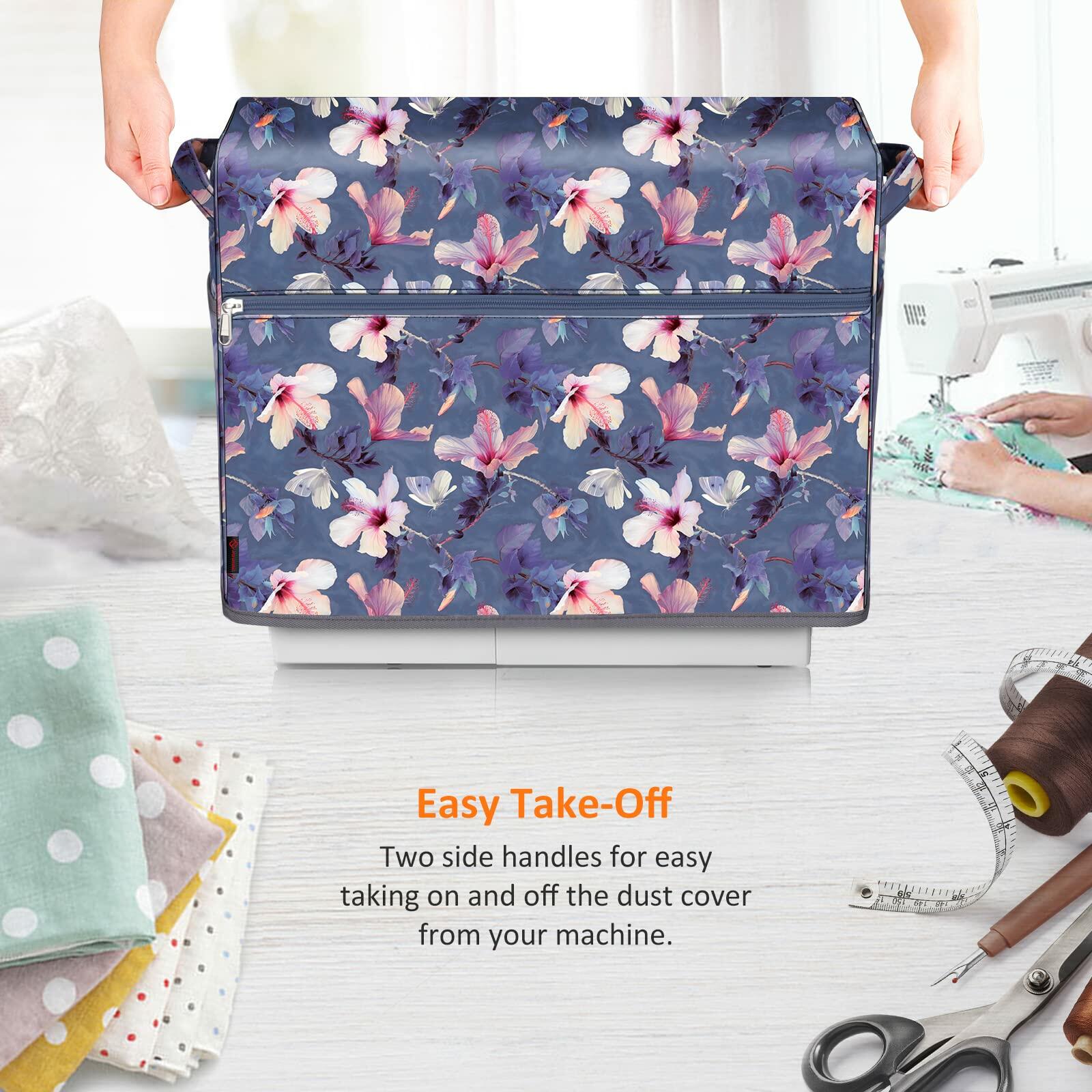 - 【Premium Craftsmanship】The front pocket is seamed with reinforced zippers to ensure a lasting-long use, mesh side pockets provide high-visibility of the essentials that you store. Two side handles for easy taking on and off the dust cover from your machine.