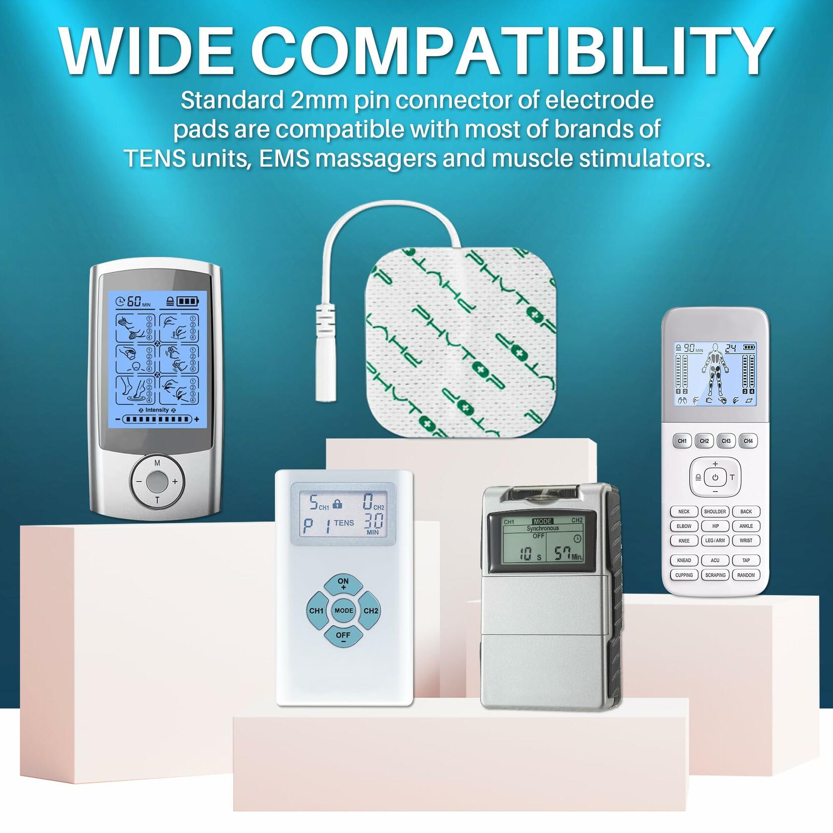 - Universal Wired: Patented flexible connectors of self adhesive electrodes pads are compatible with most of brands of TENS units EMS massagers and muscle stimulators' standard 2mm pins, also just fit well with 1.9mm or 2.1mm pins!