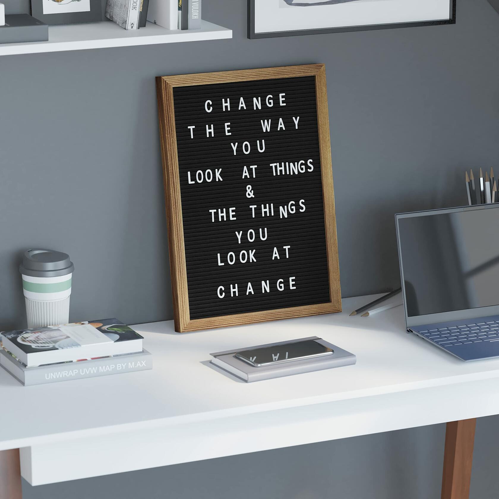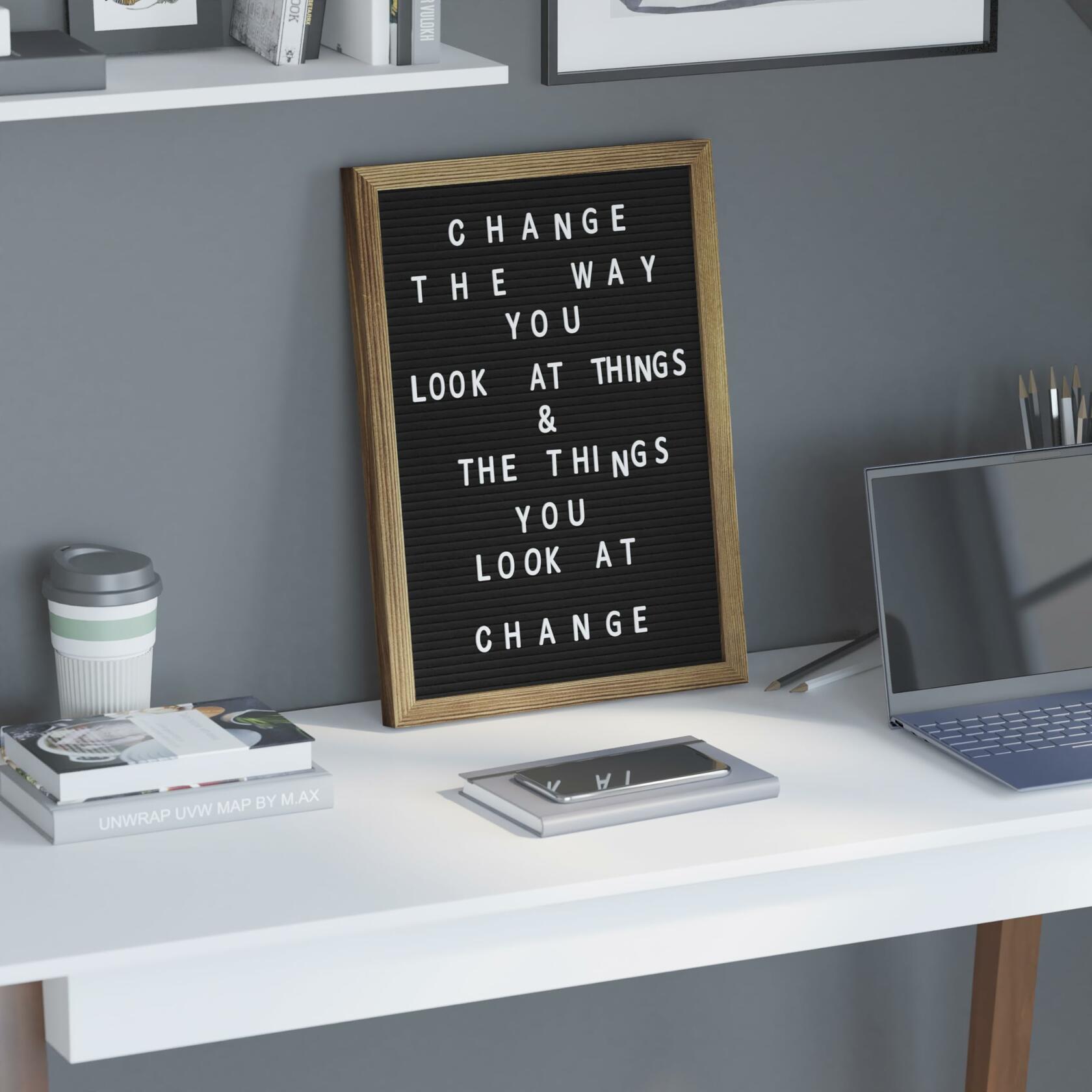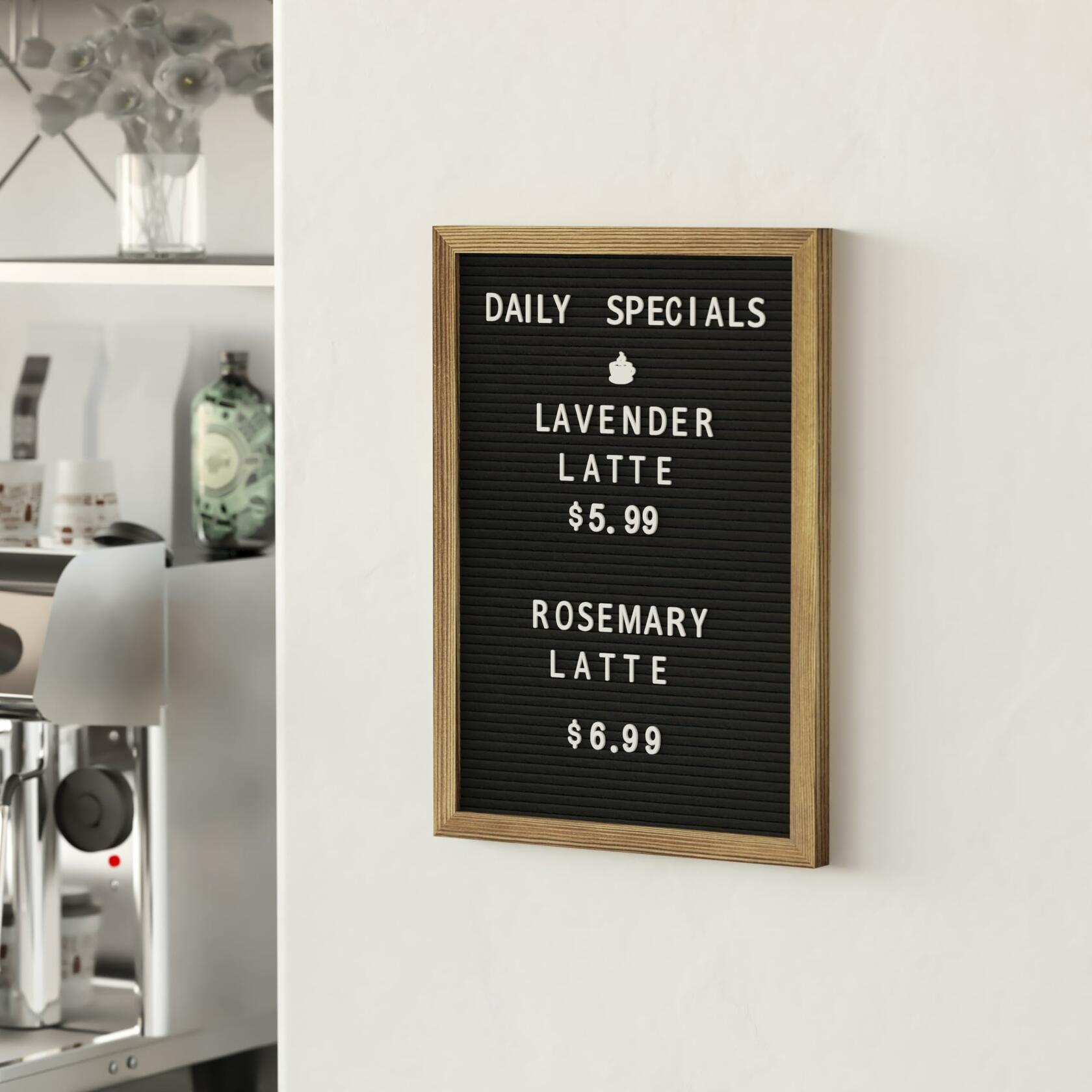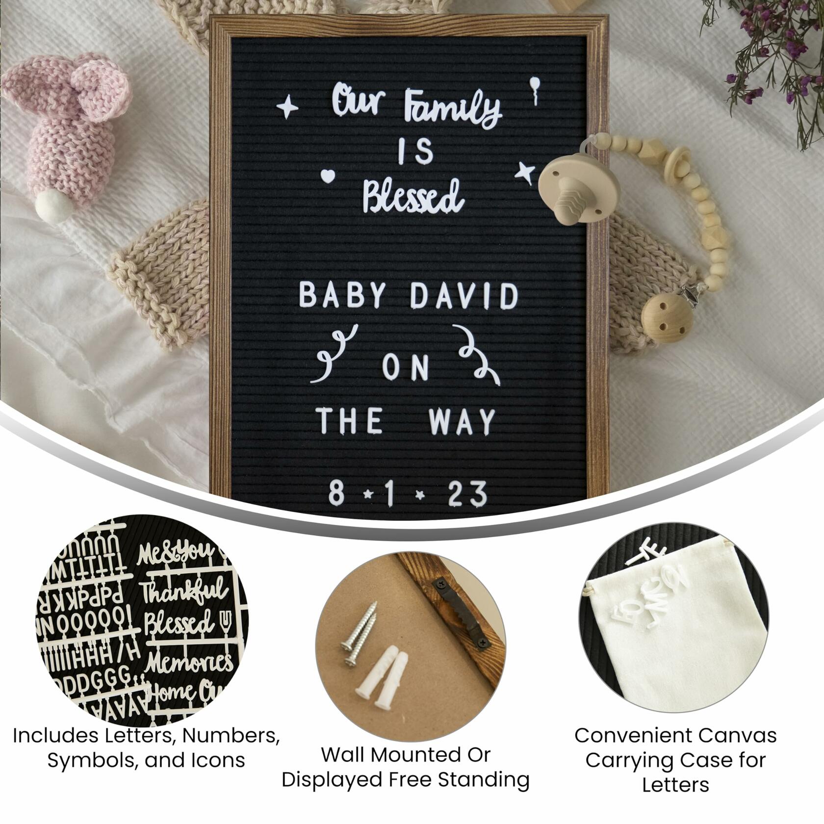 Flash Furniture Gracie 12x17 Letter Board Black Felt Torched Wood w/389 Letters