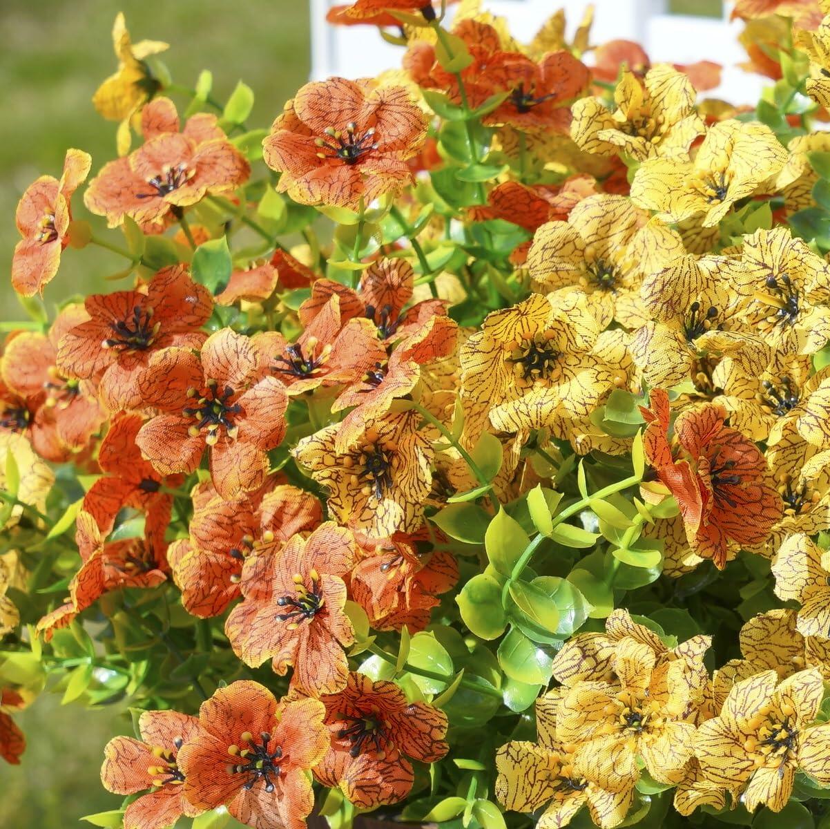 florisso Artificial Fall Mums Outdoor Decoration Orange Yellow 12 Bundles