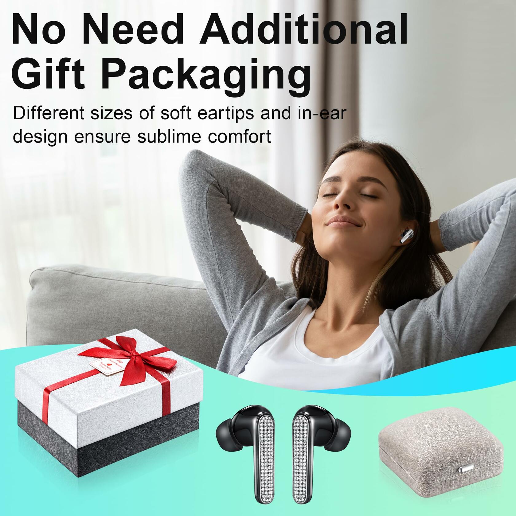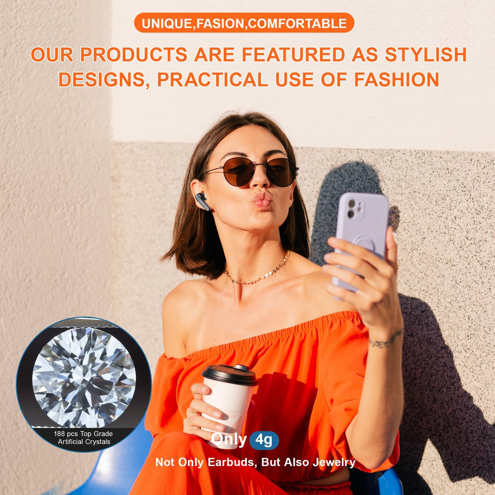 - 【188 Crystals Embedded Wireless Bluetooth Earphones】 - Make each pair of earphones unique like collectible art, 4 gram will not add burden to the ears, D-grade crystals are purely handpolished to add fashion and luxury, charging box protects the earphones, equipped with jewelry gift packaging, whether it's Valentine's Day, Thanksgiving, Christmas, birthday or other important occasions, directly give it as a gift to your friends and family
