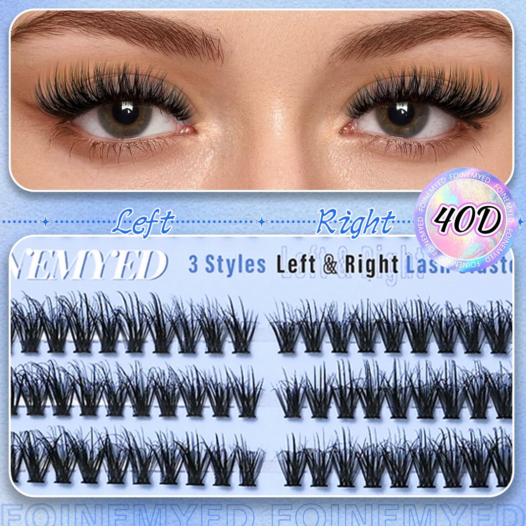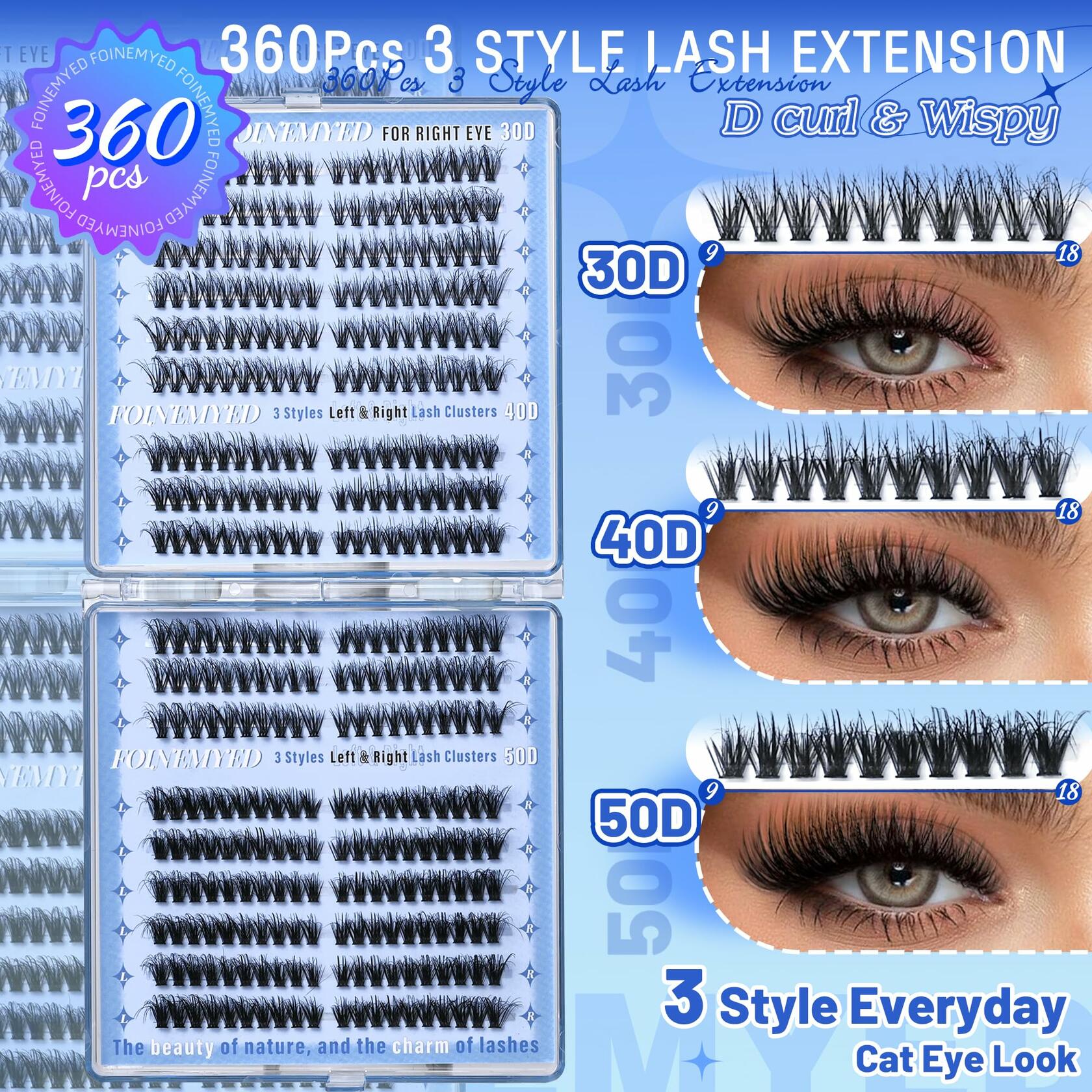 - 【360Pcs Cat-Eye Lash Clusters for Wispy Glam】:FOINEMYED lash clusters are designed to enhance your natural beauty with a soft cat-eye effect, following your lash line from 9mm to 18mm. Each row includes 20 delicate clusters with a wispy blend of 30D, 40D, and 50D densities—perfect for creating light, fluttery volume with a barely-there feel. With 18 full rows (360 clusters total), you’ll have endless ways to style your lashes, from everyday elegance to soft glam. The result? Lashes that look like yours—just better.