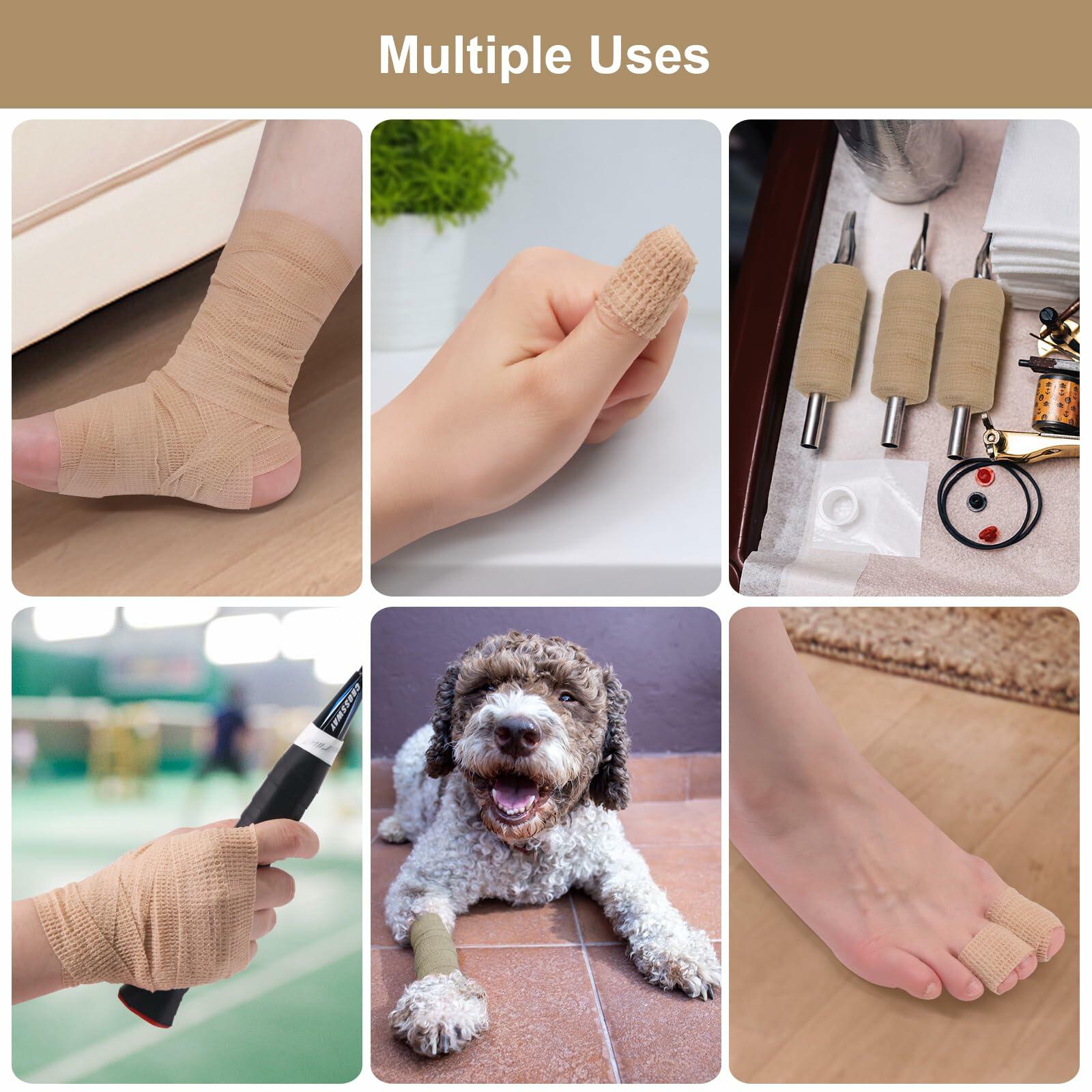 - Widely Used: Smaller sizes are suitable for smaller injuries/needs, used for toe, finger protectors, etc., to help reduce swelling; used as pet bandages, wrapping pets' scrapes and wounds; self-adhesive bandages are also very effective for joint support during sports activities; used to wrap tattoo machines grips for holding, etc.