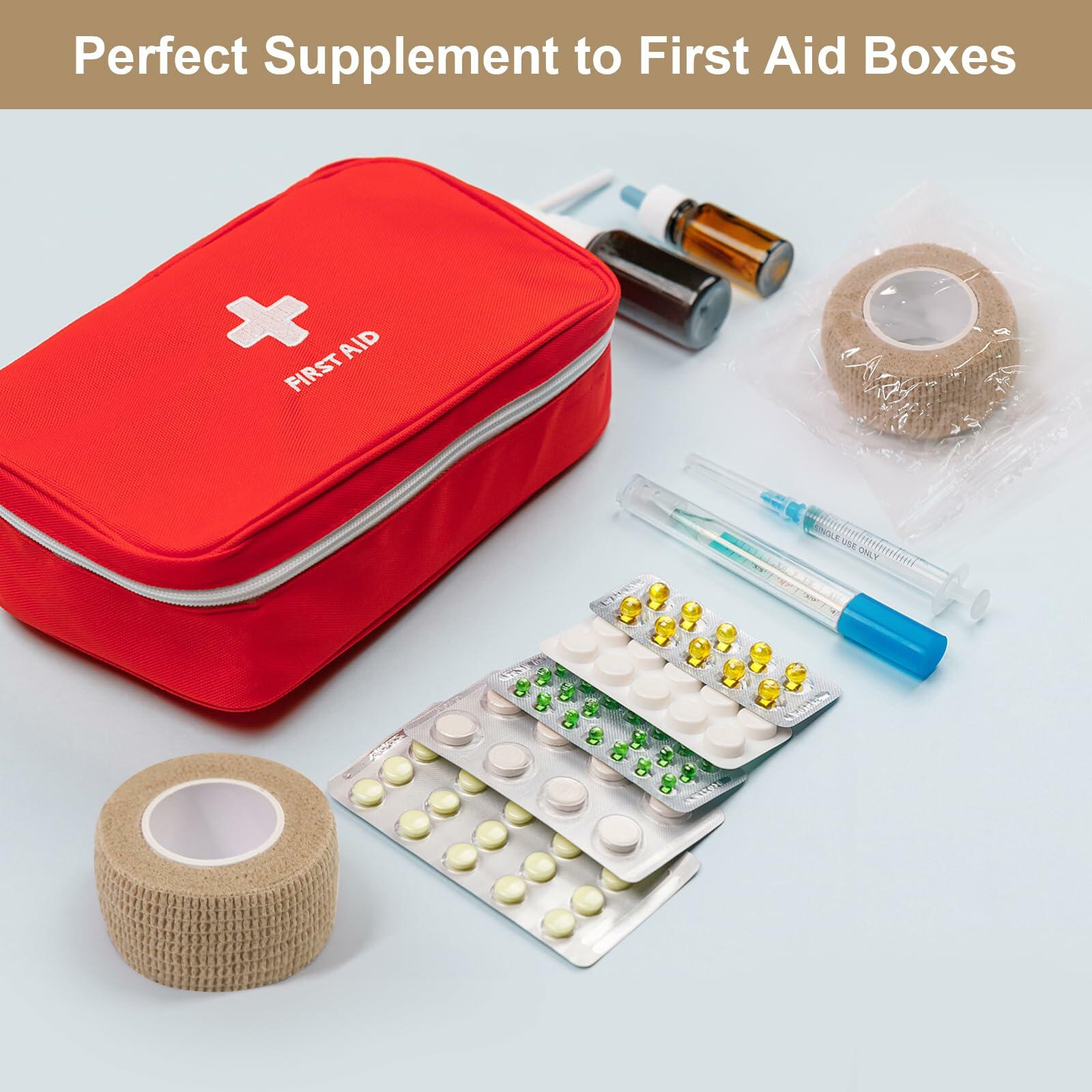 - Package Includes: You will receive 16 rolls of skin color self adhesive gauze wrap, 1 inch wide and with a maximum stretch length of 5 yards; Each roll is individually wrapped and sealed for easy storage and carrying; The athletic wrap tape are a perfect addition to first aid kits, with sufficient quantities to prepare for emergencies