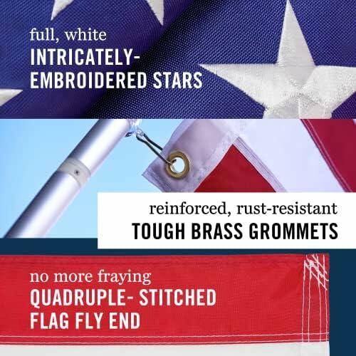- Durable All-Weather Construction: Crafted from heavy-duty spun polyester, this 3x5 ft American flag is UV-protected, water-repellent, and fade-resistant, built to endure high winds, rain, and sun for year-round outdoor display.