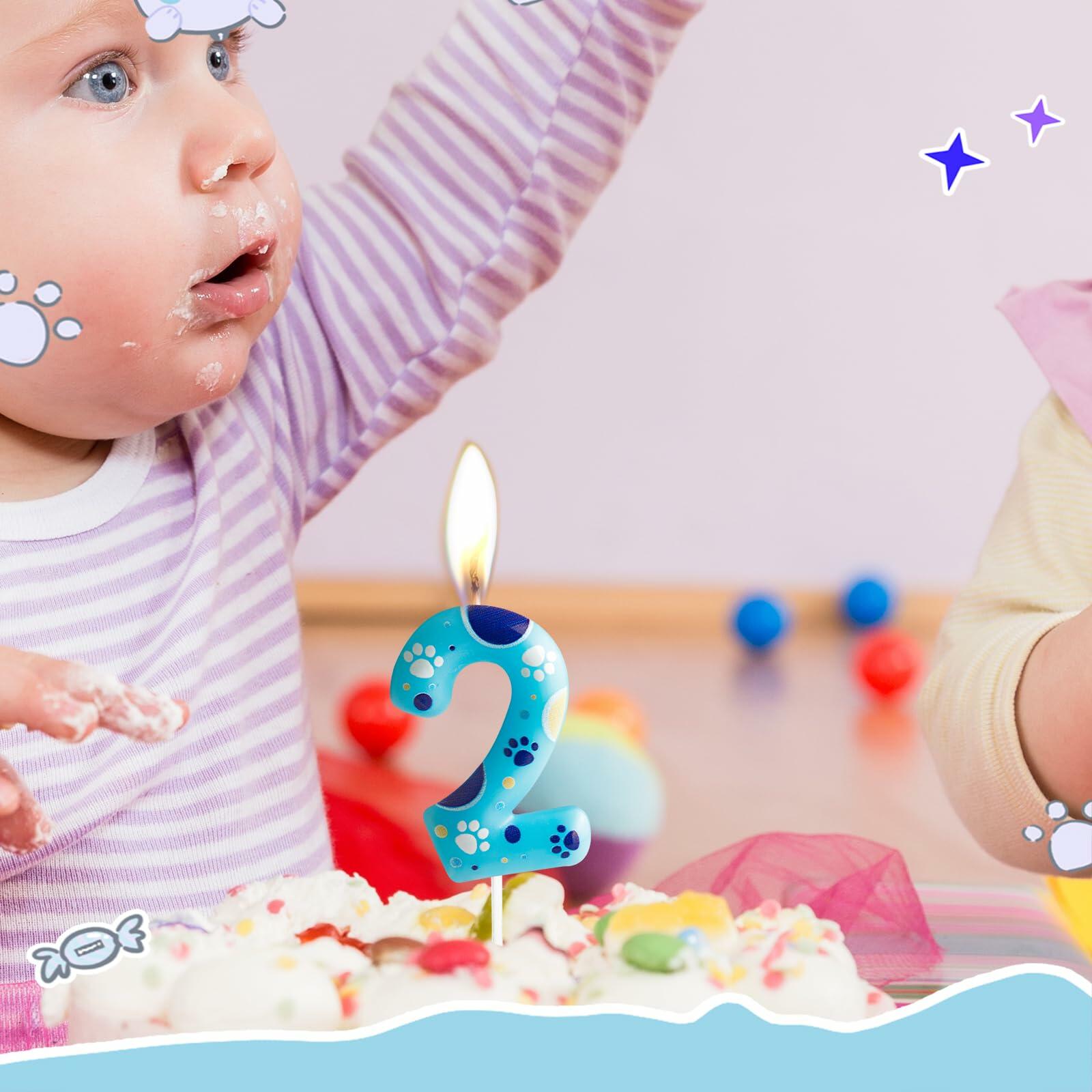 FUNCANDLE Blue Dog Paw Print Birthday Candle Number 2 Size 2 Blue